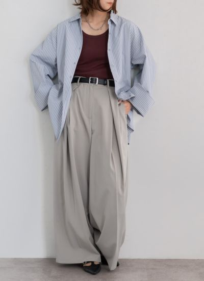 ビスチェとのレイヤードコーデやニットととの相性もよく幅広いコーデを楽しめます。