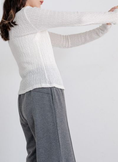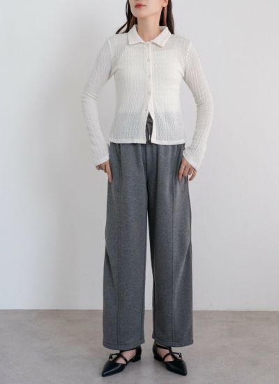ほどよい凹凸感で伸びがよい表情のあるジャガード生地を使用したポロトップス。