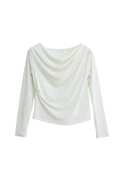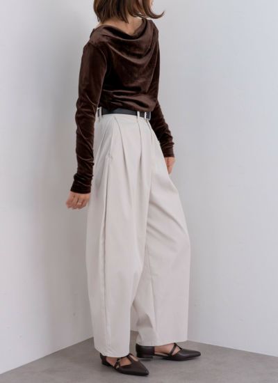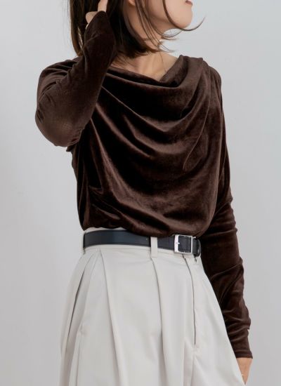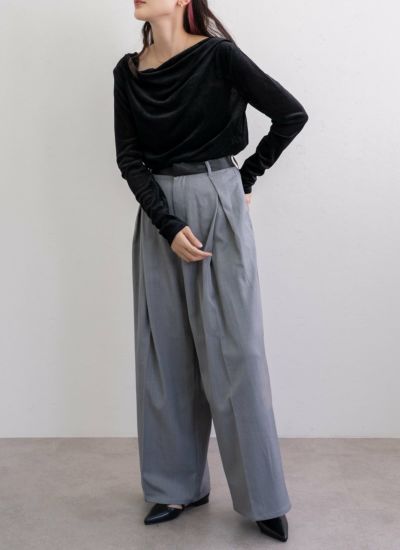 revoam【光を柔らかく受けるシアーベロアが、上品なドレープを演出するトップス】 シアーベロアドレーププルオーバー