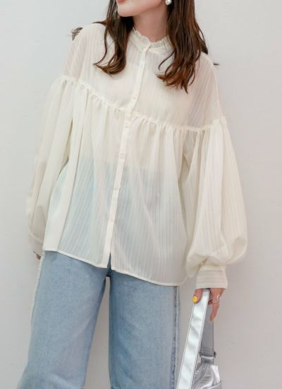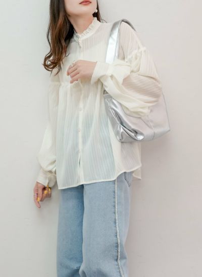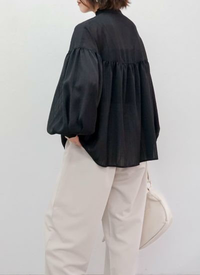 シフォンネップドビーの素材感が魅力のギャザーブラウス。