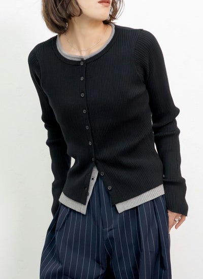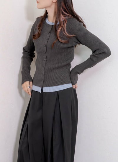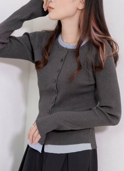 revoam【トレンド感溢れるレイヤードアイテム】 配色レイヤードカーデ