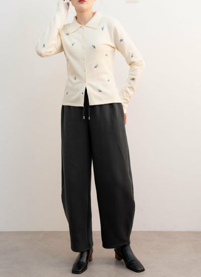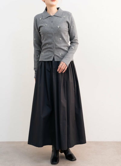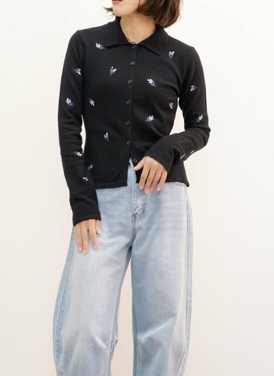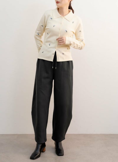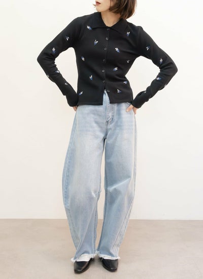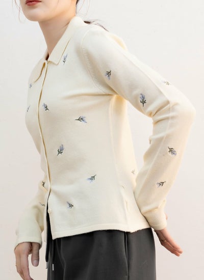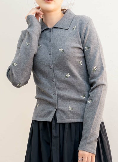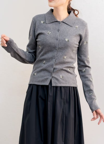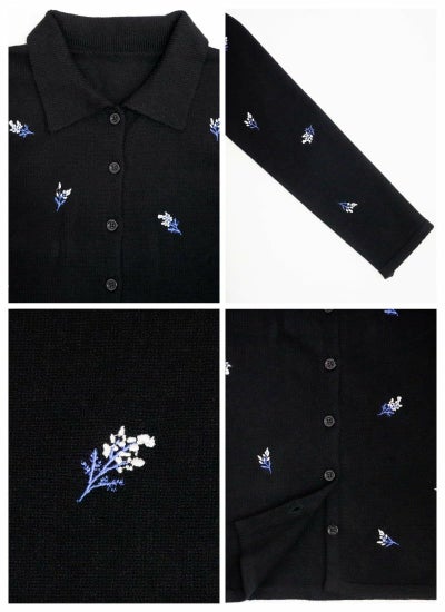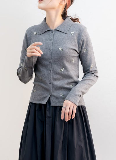 花柄刺繍ポロカーデ