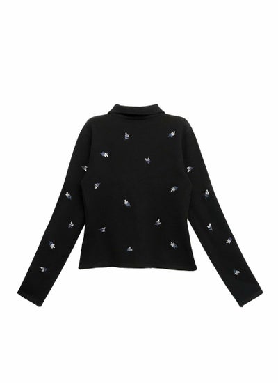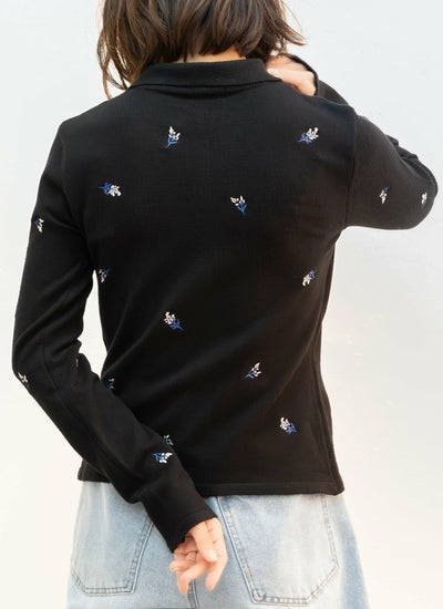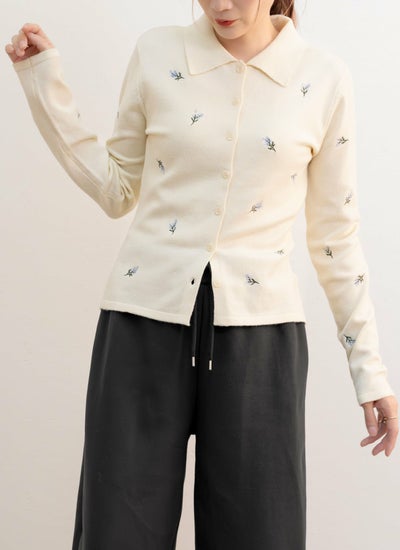 トレンドのポロ襟デザインに、繊細な小花柄刺繍が施されたニットトップスです。