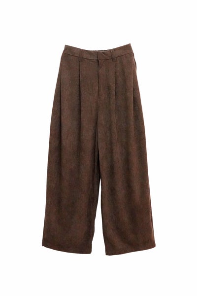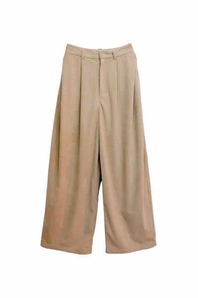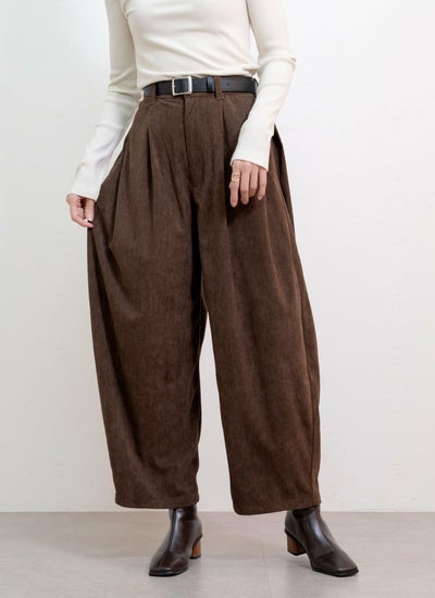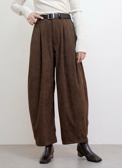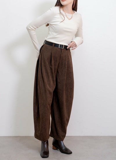 コーデュロイ素材で仕立てた、立体感のあるコクーンシルエットのパンツ。
