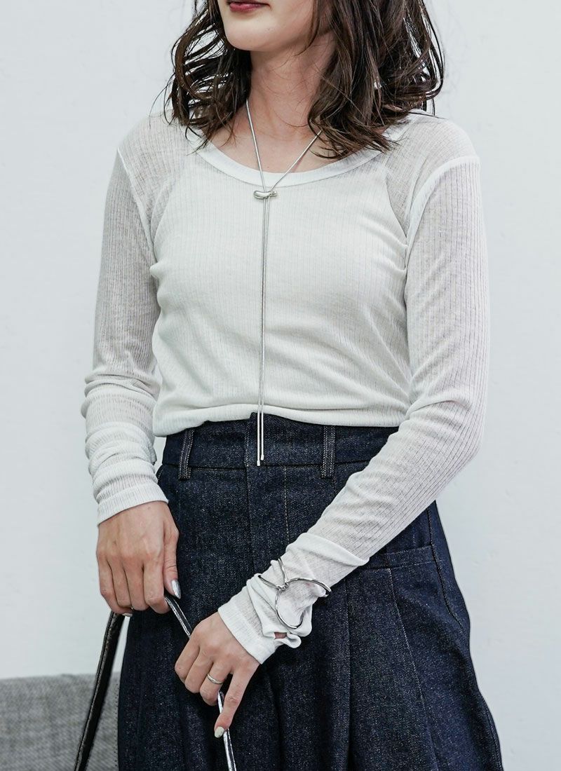 Tシャツやタートルニット、ブラウスなど幅広いアイテムとスタイリング可能◎