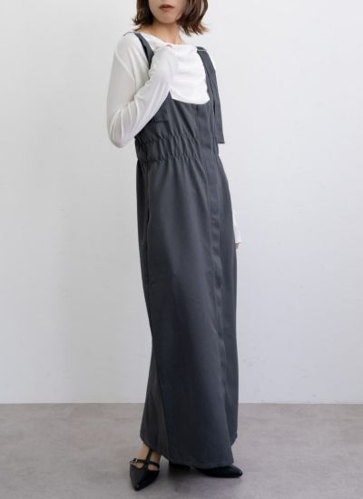 revoam【着回し力抜群のジャンスカ!】 シャーリングジャンパースカート