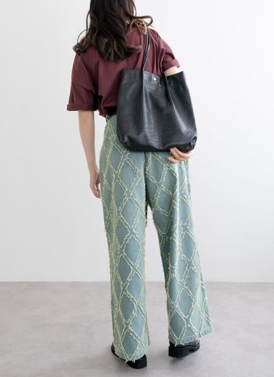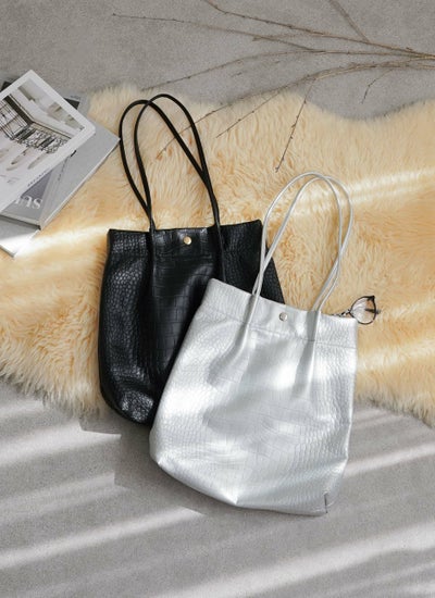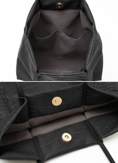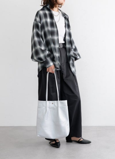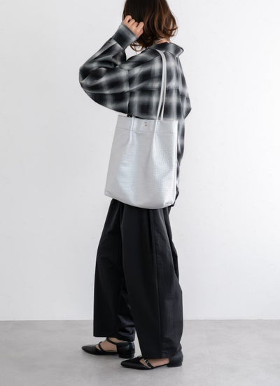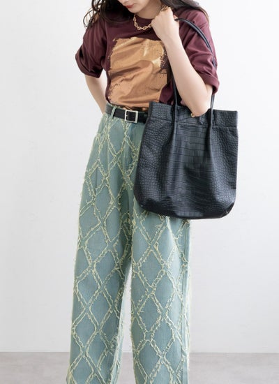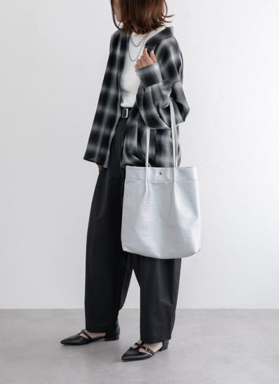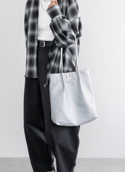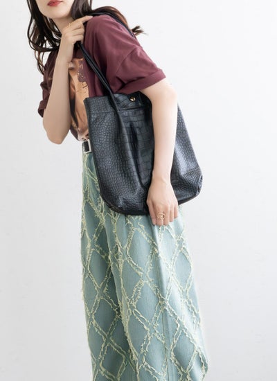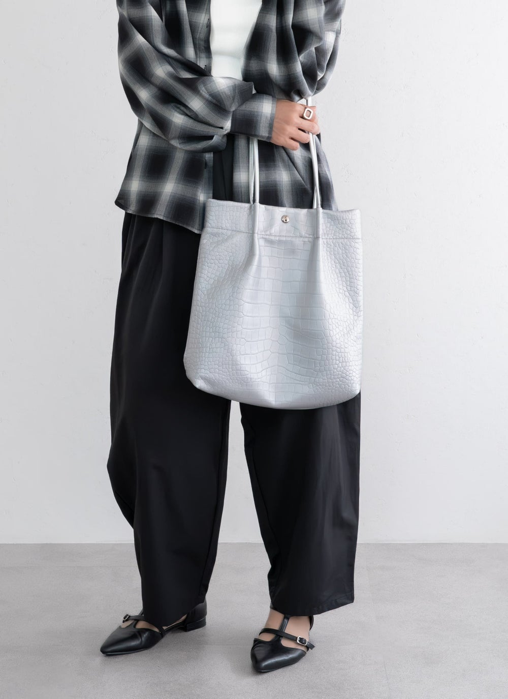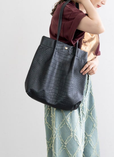 クロコダイル調の型押し合皮を使用した、ミドルサイズの上品なトートバッグ。