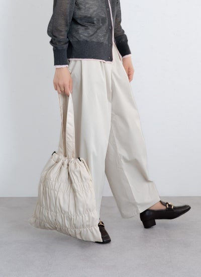 サイドの紐で絞り具合を調節でき、気分や荷物に合わせてお使いいただけます。