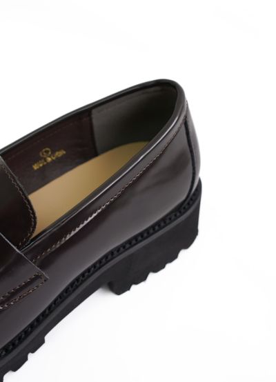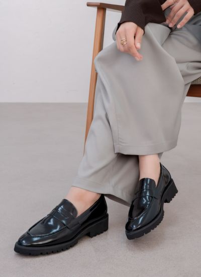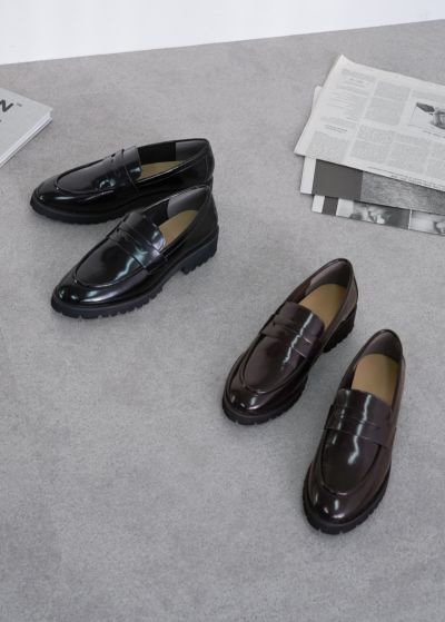 クラシックなローファースタイルに、現代的な厚底デザインを取り入れたアイテム。