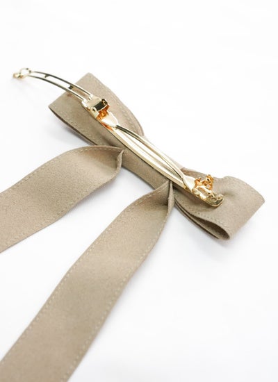 スエード調のリボンをバレッタに仕上げた、シンプルながらも目を惹くデザインは、いつものコーデをアップデートしてくれます。