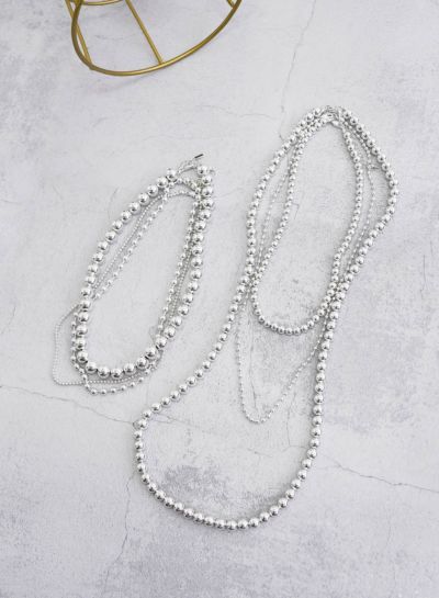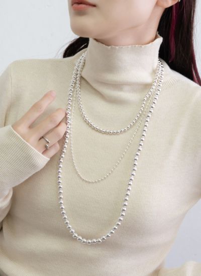シンプルながらも存在感のあるメタルビーズネックレスは、その日の気分やファッションに合わせて、マルチに組み合わせを楽しめるデザインです。