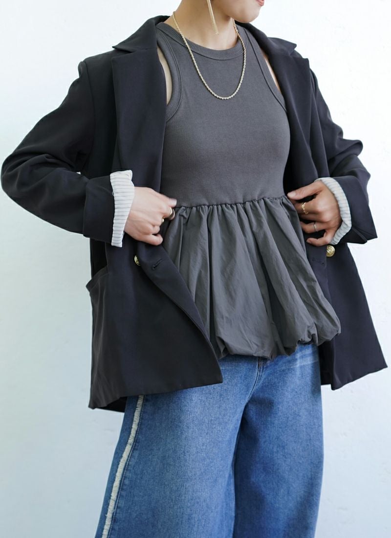 重たくなりがちなジャケットコーデも、この着丈なら重心がグッと上がります。