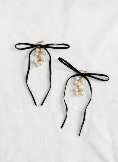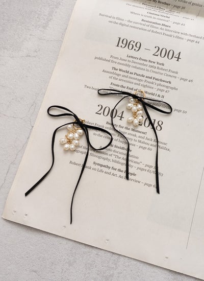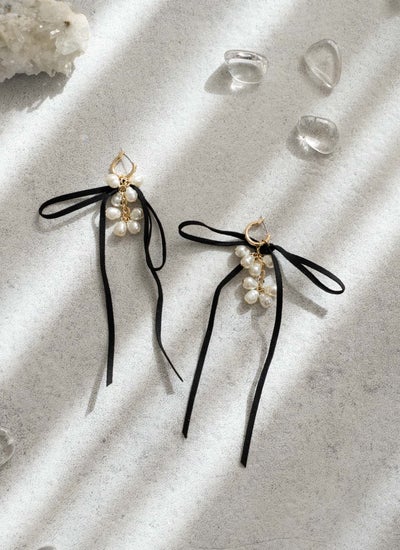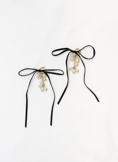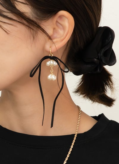 3. シャワーパールスエードリボン ピアス / イヤリング