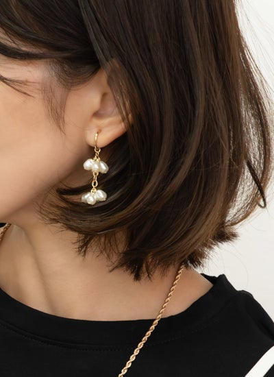 revoam【甘さと気品をその日の気分で。耳元に揺れる、私だけのレイヤード。】 シャワーパールスエードリボン ピアス / イヤリング