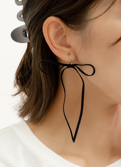 縦のラインを強調する長めのリボンは、顔周りをすっきりと見せ、動くたびにドラマチックに揺れます。