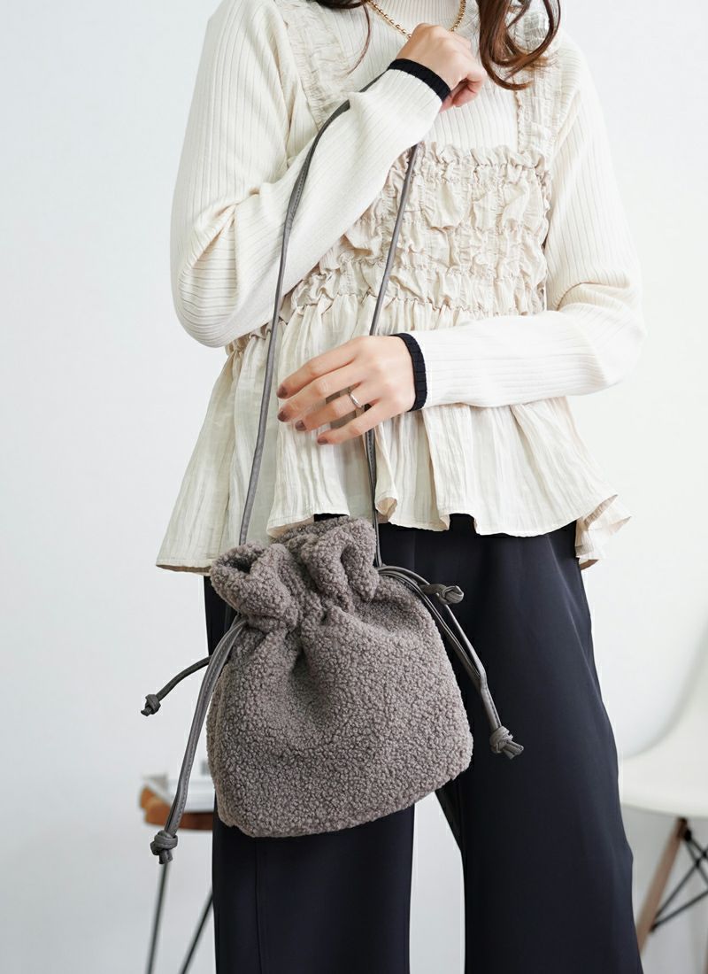 revoam【ふわふわのプードルファーが存在感たっぷりの巾着型ポシェット】 【10%OFF】プードルファー巾着ポシェット