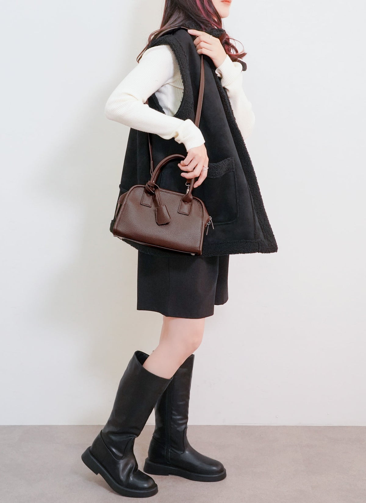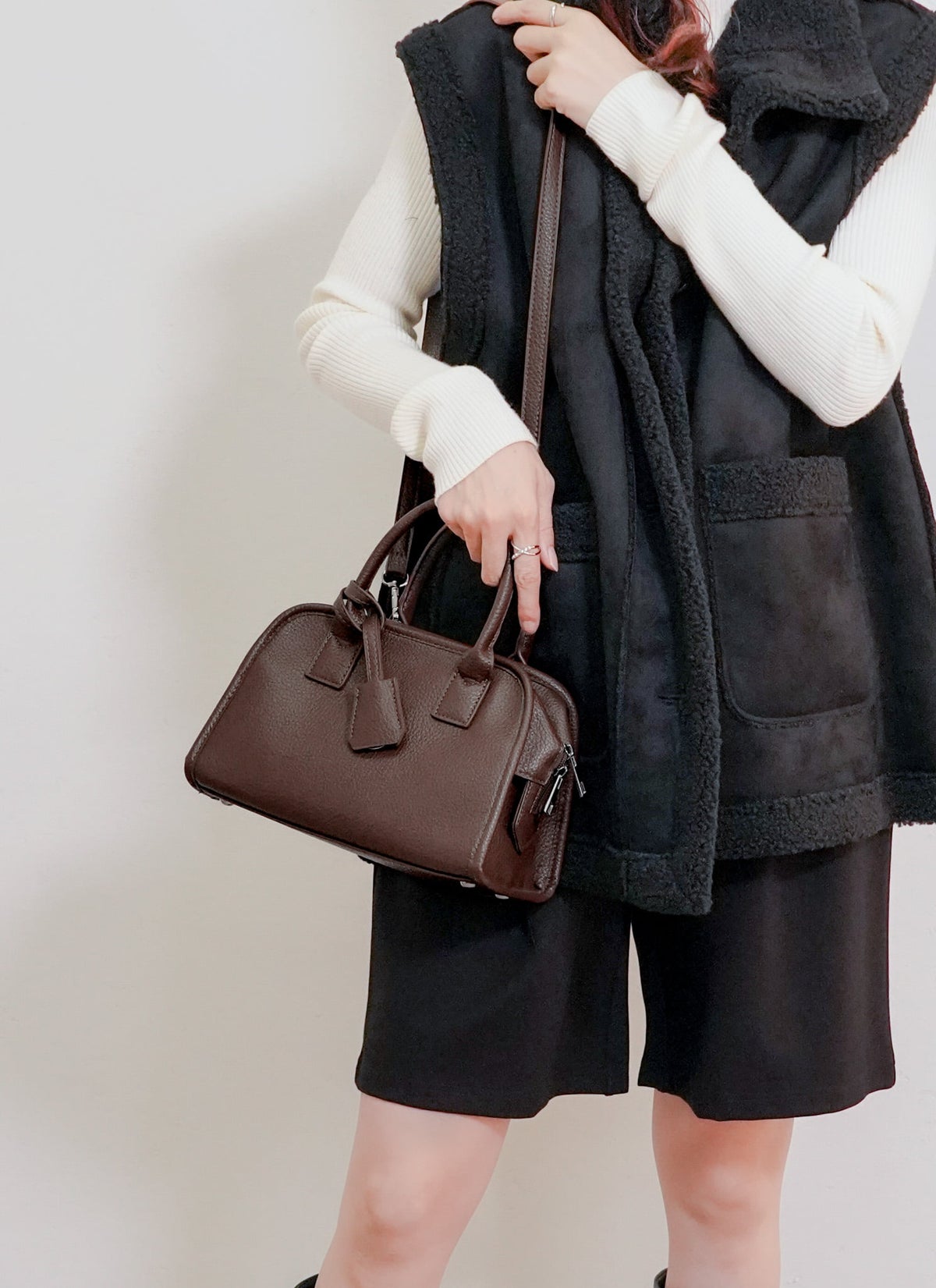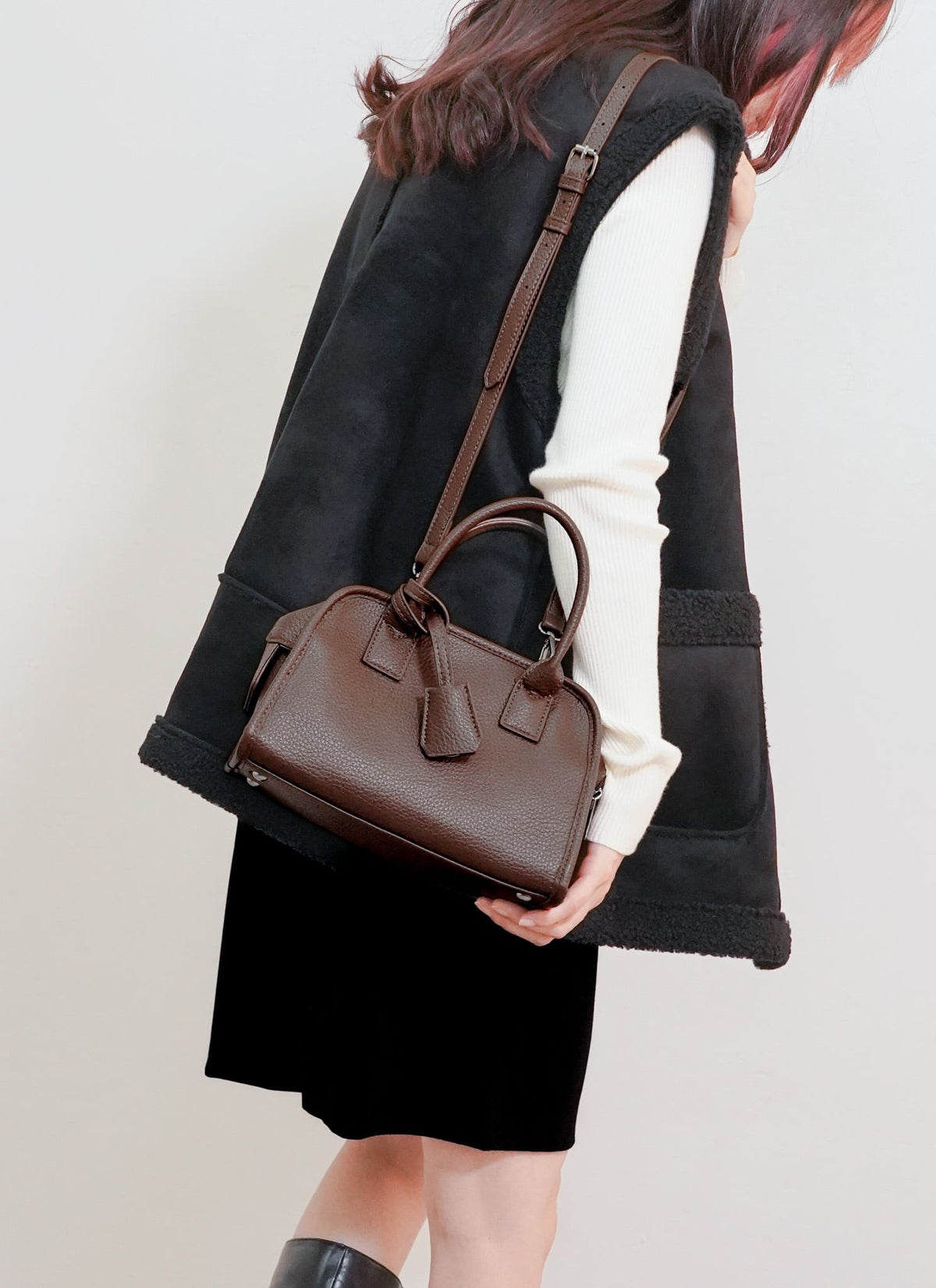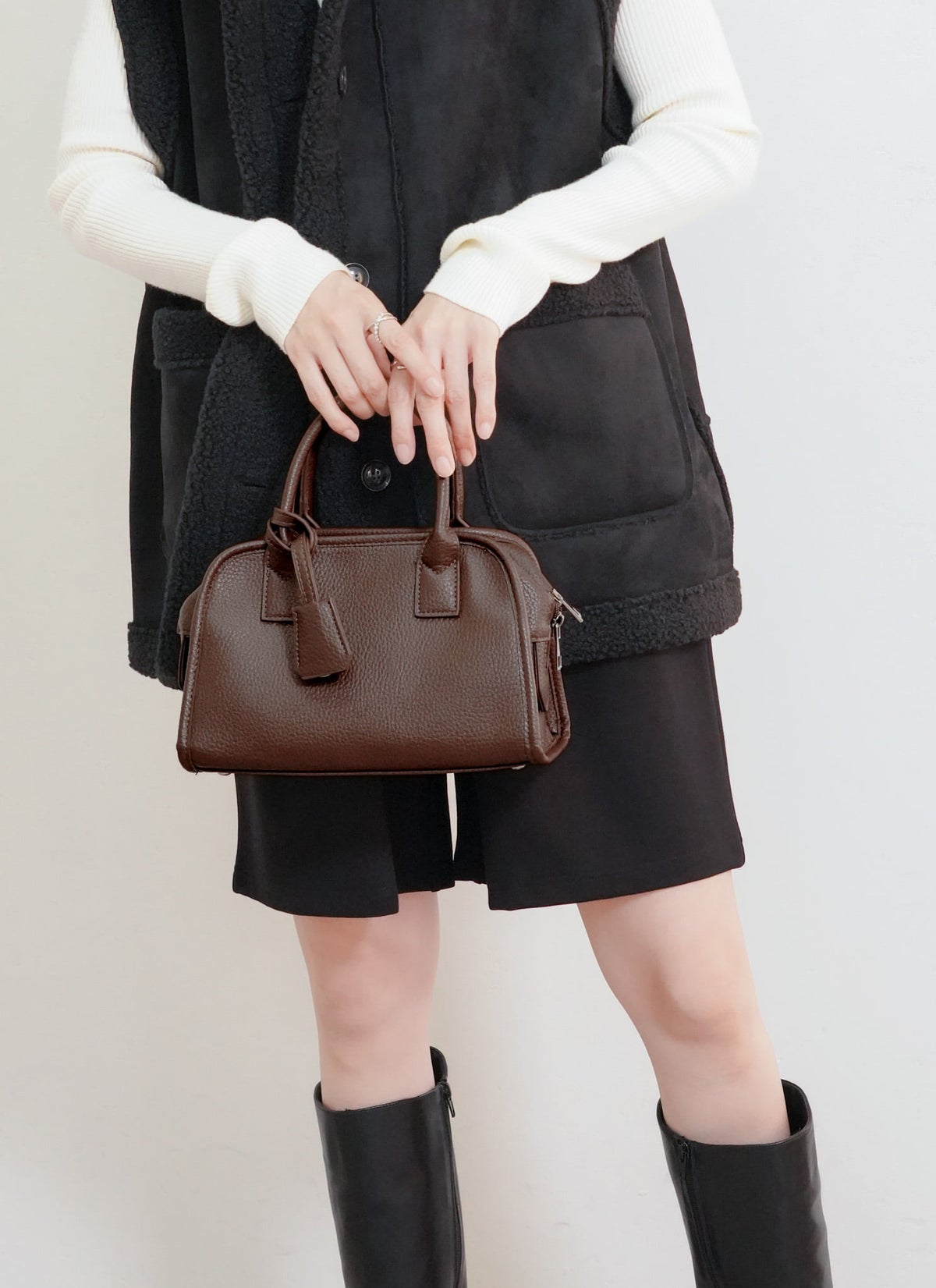 revoam【上品な大人のための、毎日使える相棒!】 チャーム付2WAYミニボストンバッグ