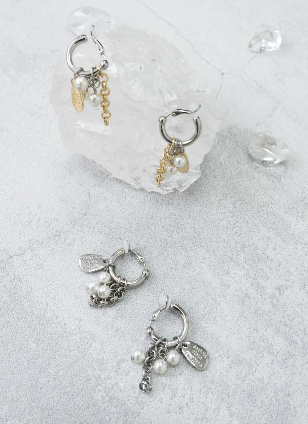 トレンド感のあるマルチチャームが存在感のあるイヤリング。