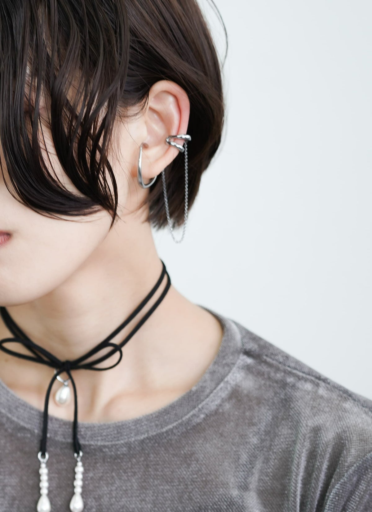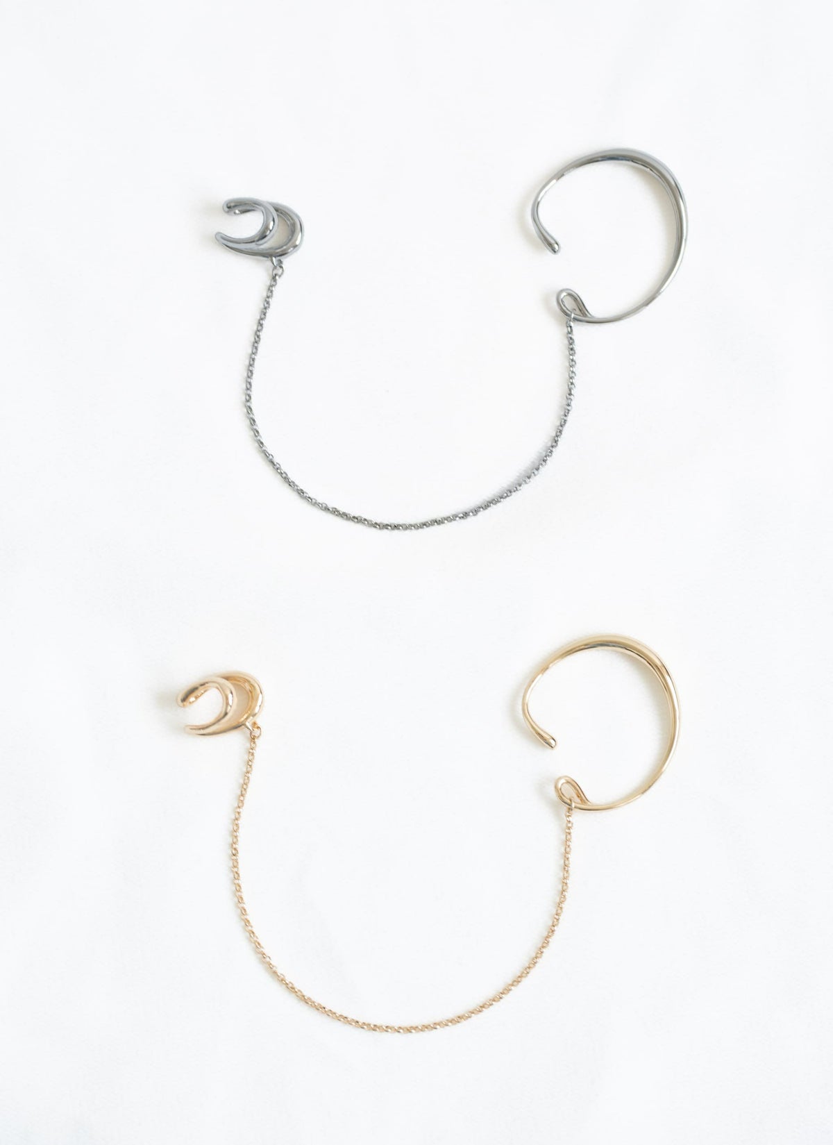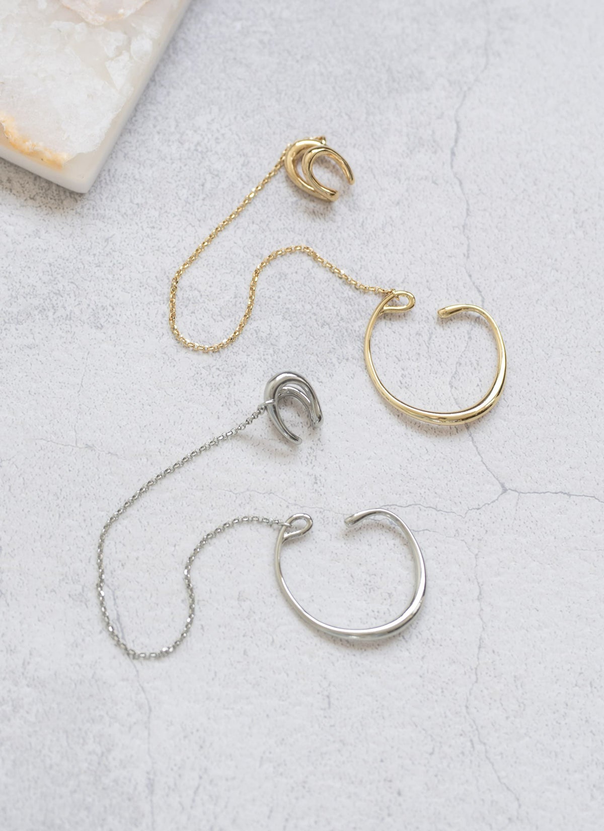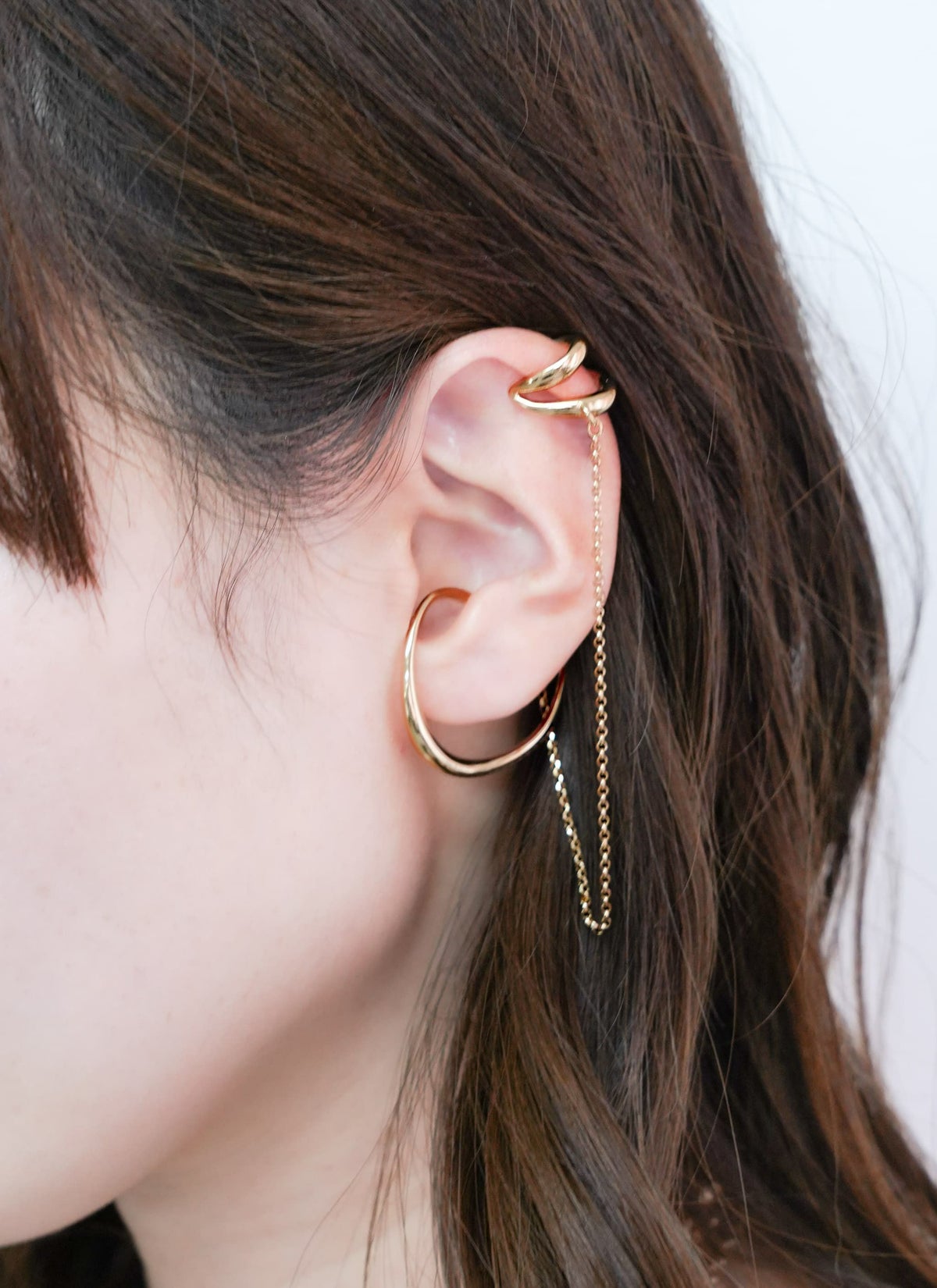 revoam【新しい付け感のイヤーカフ】 ダブルエンフォールドチェーンイヤーカフ
