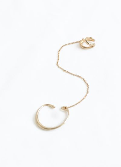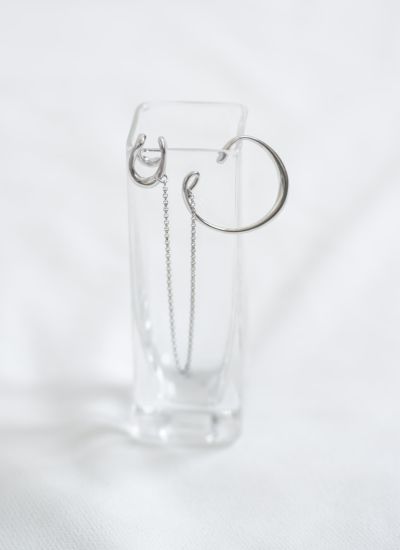 華奢なチェーンとニュアンス感のあるフープラインが組み合わさった、シンプルでありながら上品さも感じさせるデザイン。
