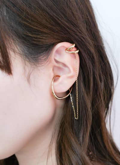 耳に引っ掛けるタイプのイヤーカフは、ピアスやイヤリングとはまた違った、新しい着け感が目を惹くアイテム。