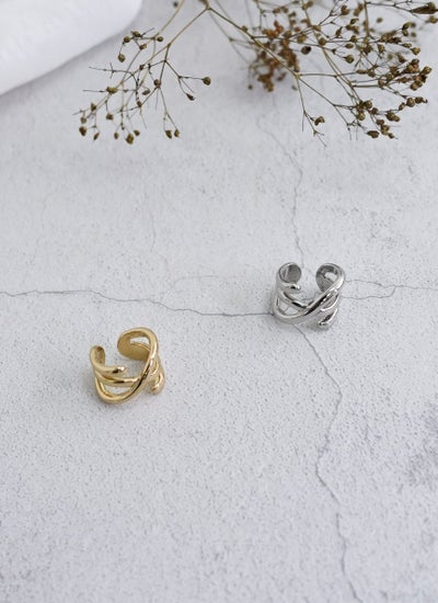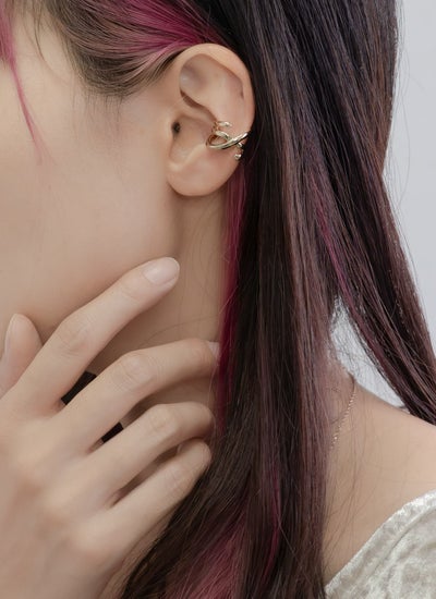 3つのラインが交差した、シンプルでいて目を引くデザインのイヤーカフ。