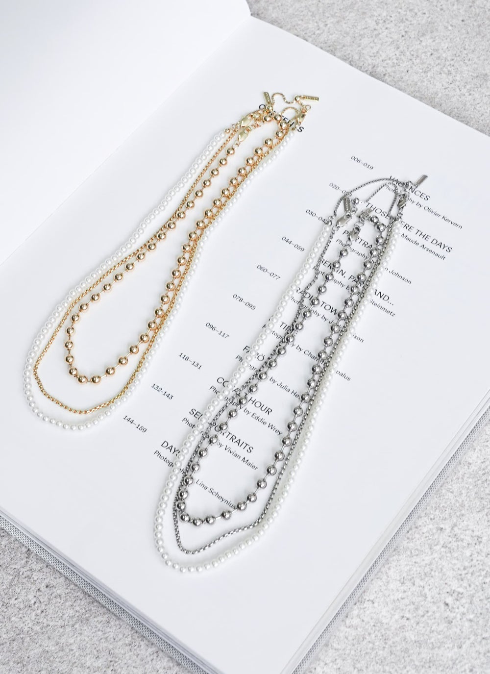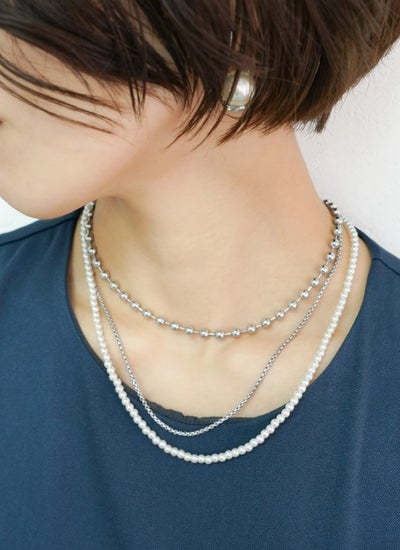 4. ボールチェーン×パールマルチレイヤードネックレス