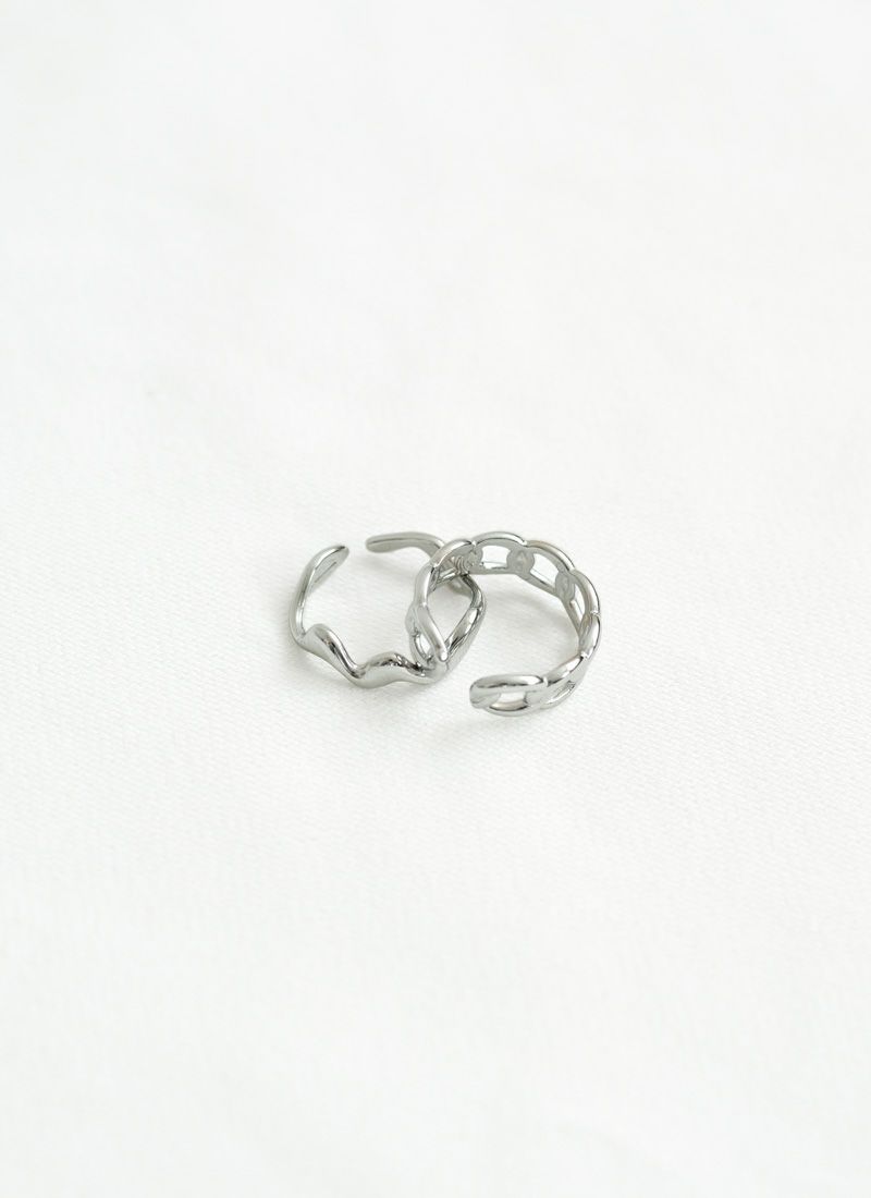 revoam【耐久性に優れたステンレス素材を使用したコンビリング】 ウェービー×チェーンステンレスセットリング
