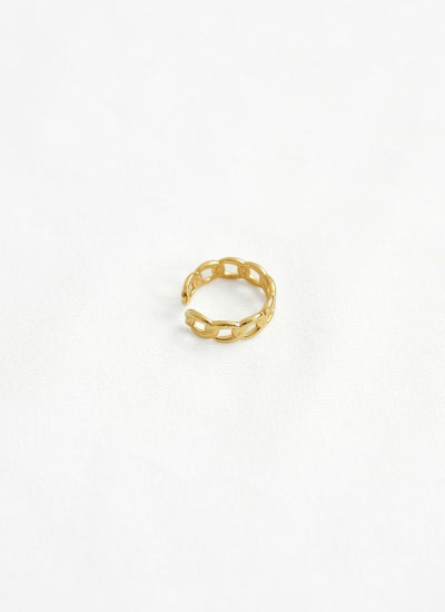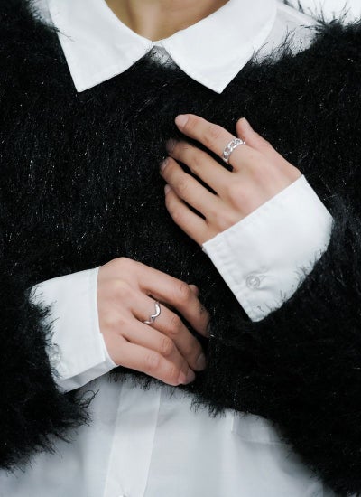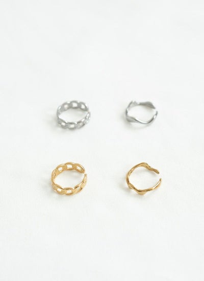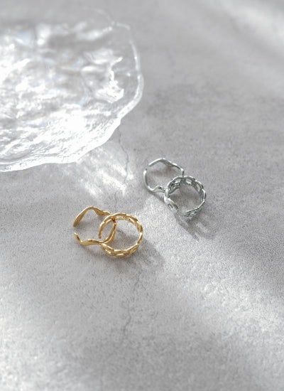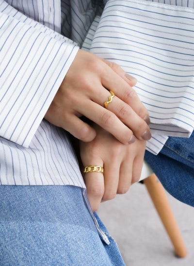 滑らかにウェーブするラインが目を惹くリングと、チェーンライクなリングを組み合わせた、上品さが漂うデザイン。