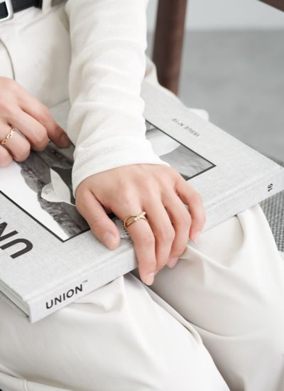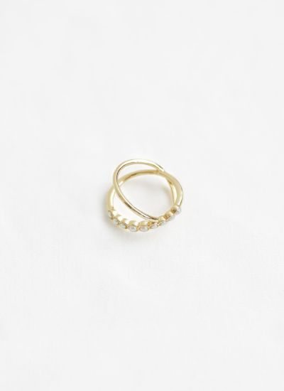 クロスしたラインに細かいパールがあしらわれたデザインは、上品で華やかな指元を演出します。