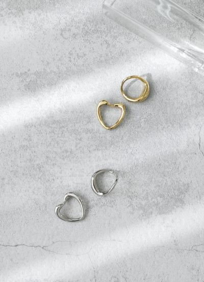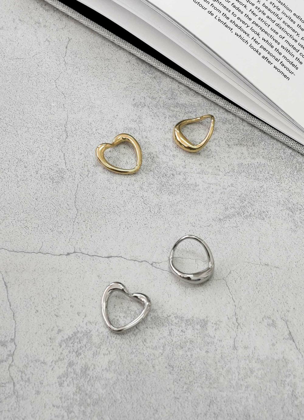 人気のハートシェイプのリングと、うねりのあるフォルムのリングをニュアンス感のあるラインで仕上げたセットリング。