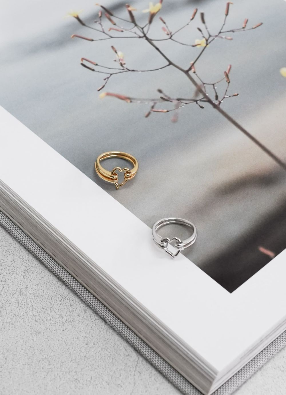 キュートなハートモチーフが目を惹くリングは、シンプルながら存在感を放つアイテム。