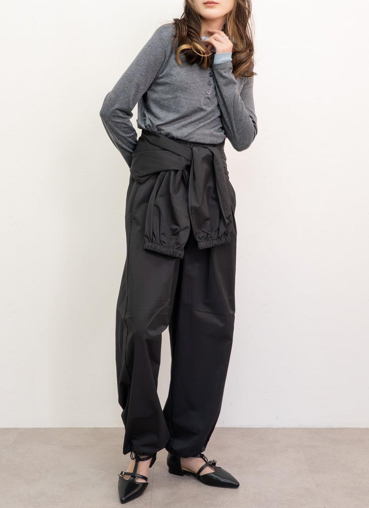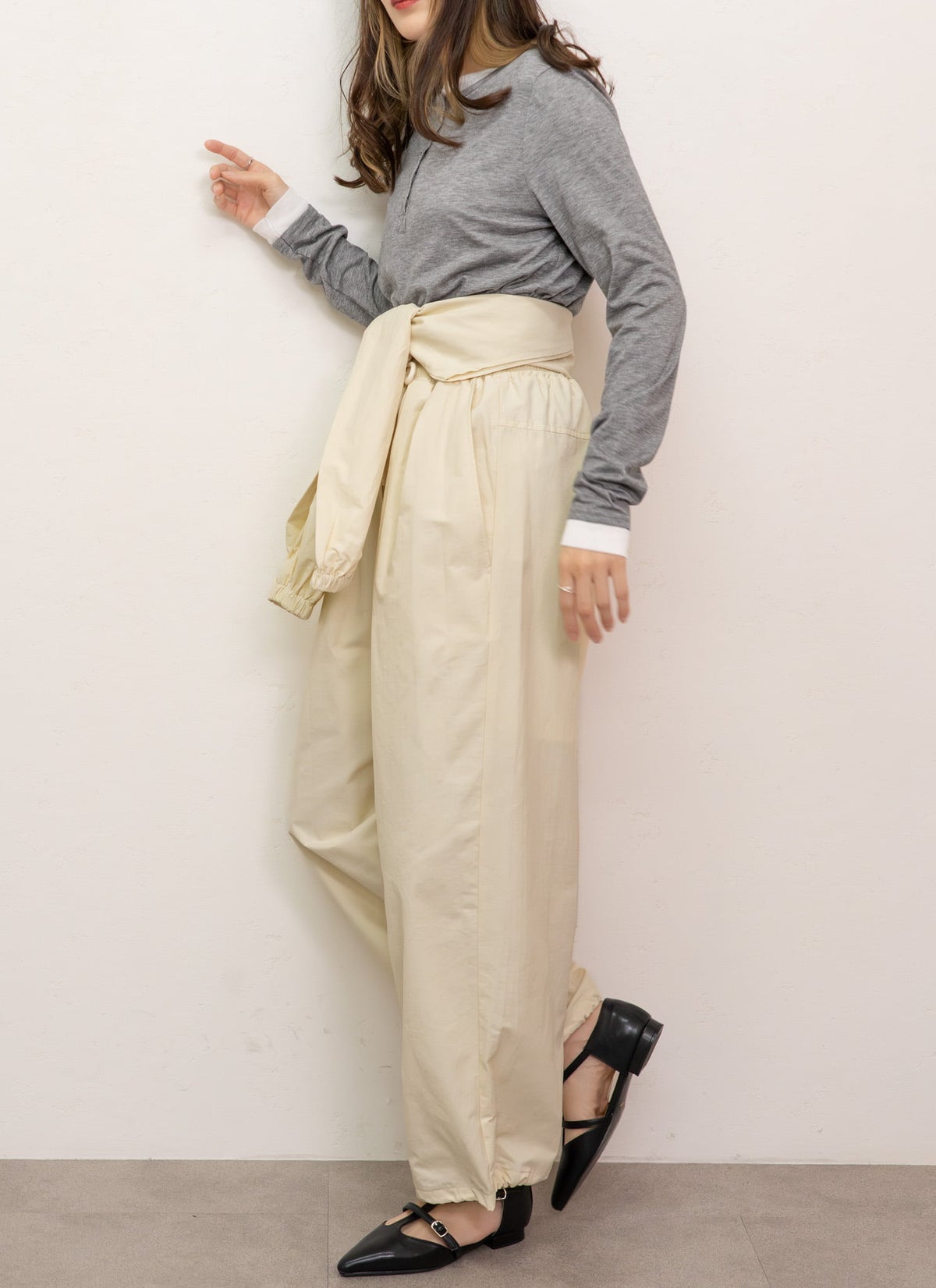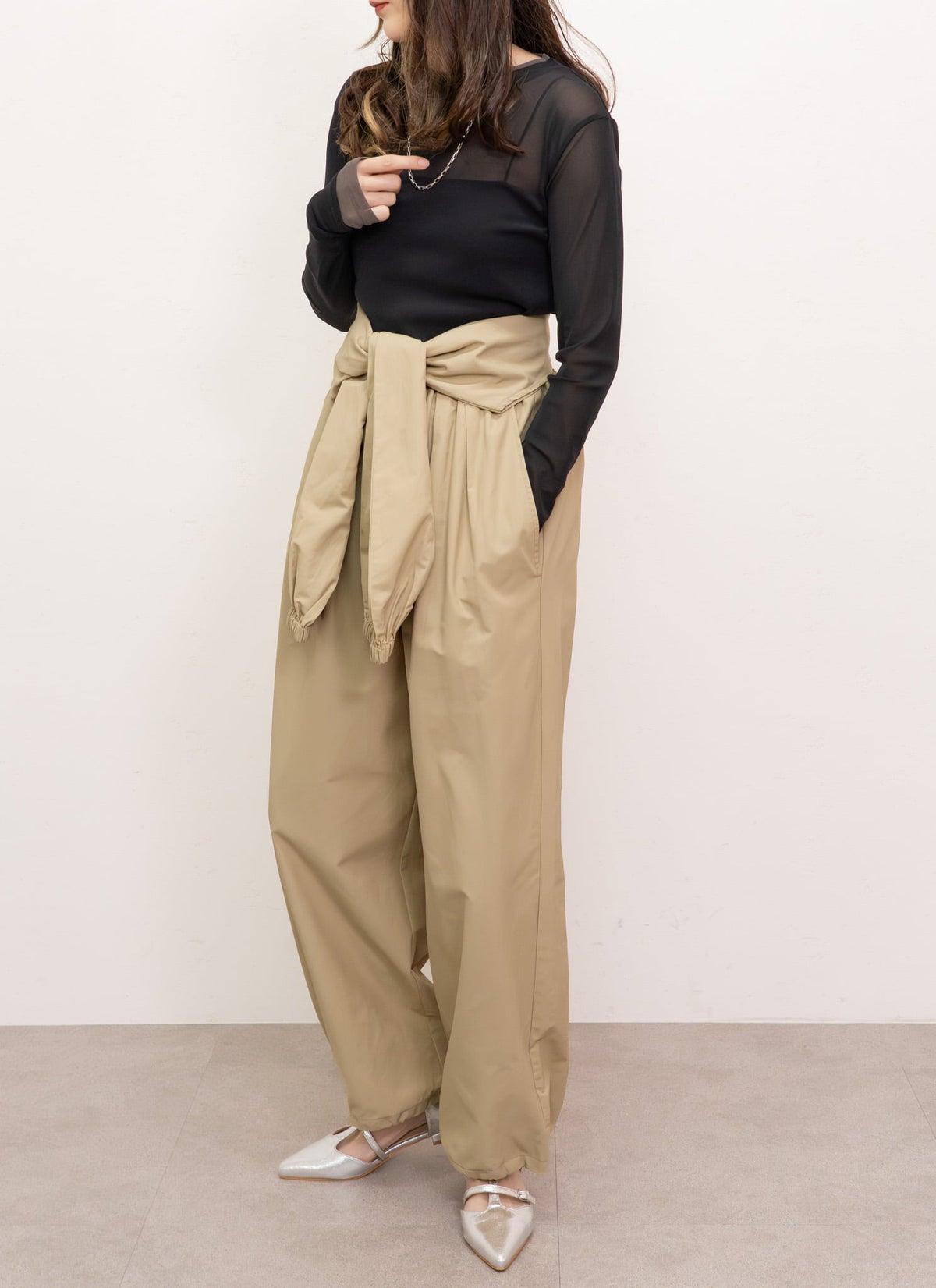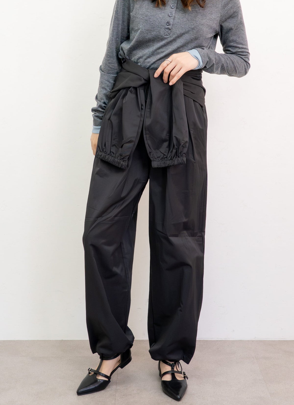 revoam【結ぶ、纏う、差がつく。日常をモードに変える、腰巻き風ジョガー】 ウエスト巻きジョガーパンツ