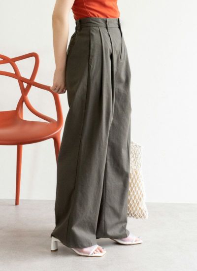 revoam【リネン風素材&ツータックで美脚見え。Tシャツもブラウスも好相性の万能パンツ】 【35%OFF】リネンライクツータックパンツ