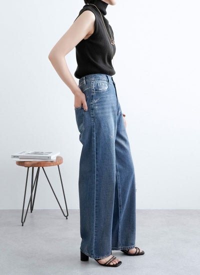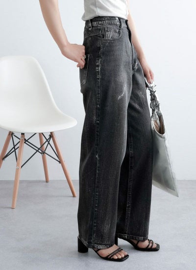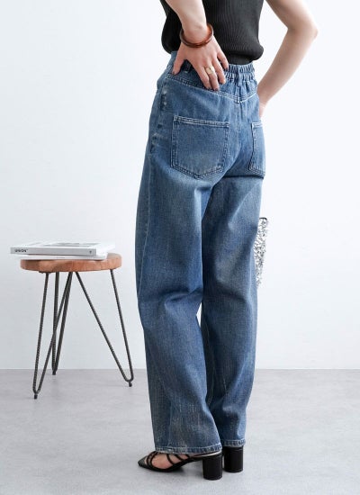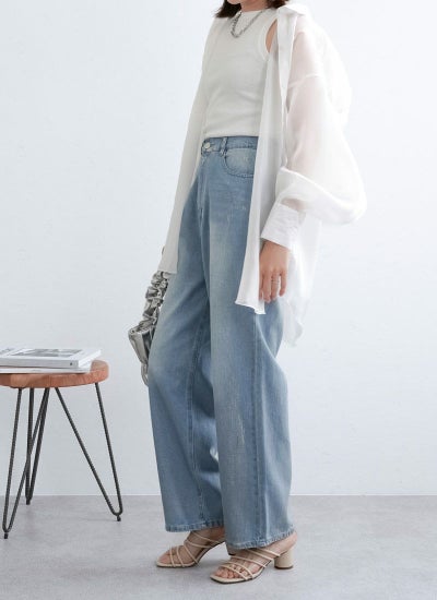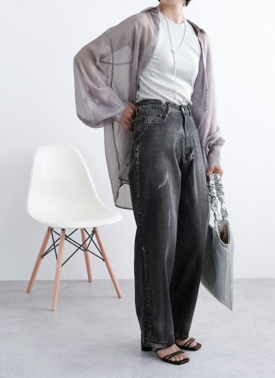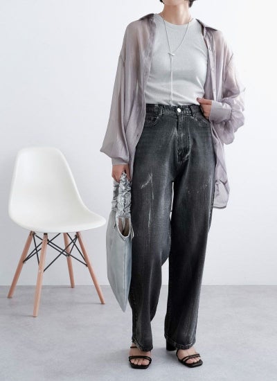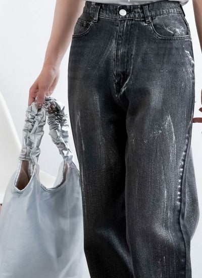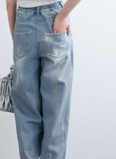 revoam【カジュアルもさりげなく差がつく。ニュアンスのある箔加工で、コーデに立体感を】 【15%OFF】箔加工デニムパンツ