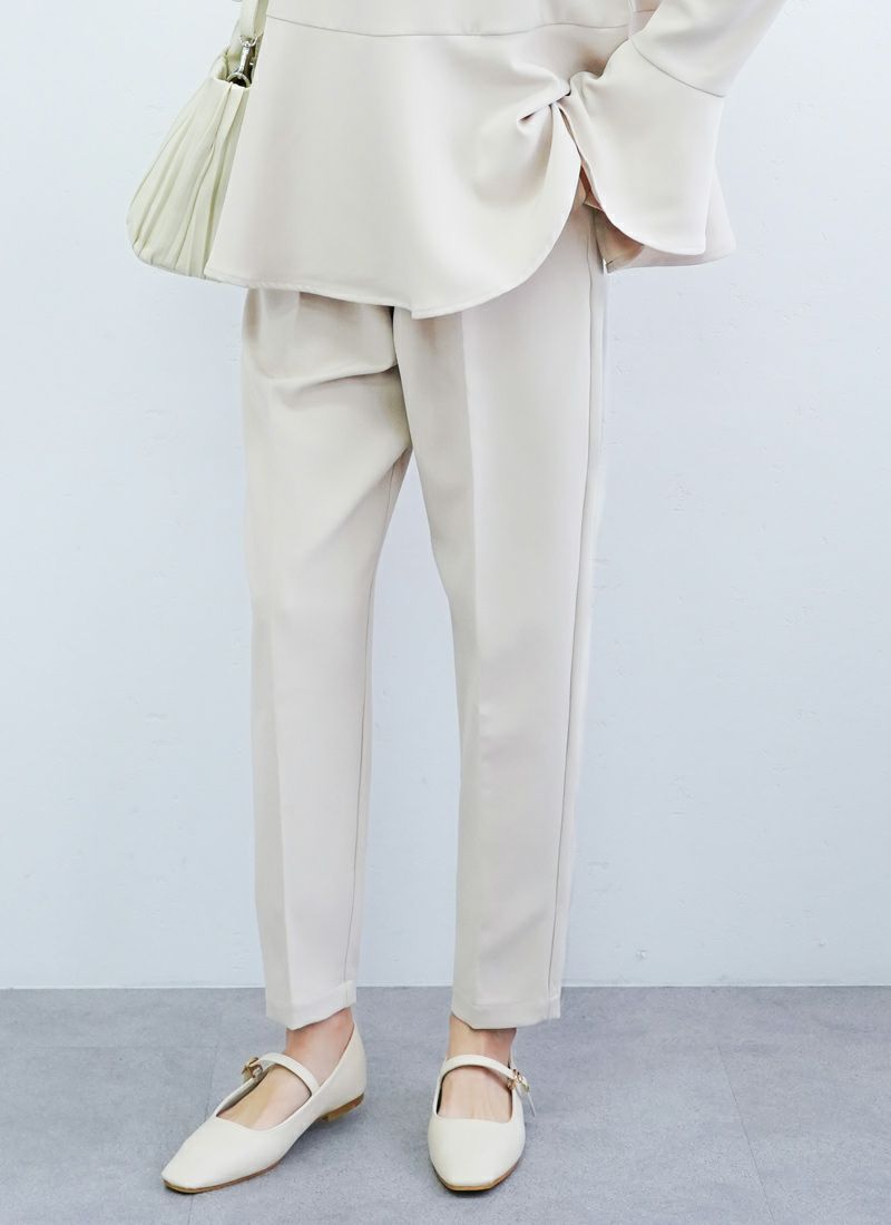 タック入りで立体感のあるシルエットが美しく、脚長効果も抜群。