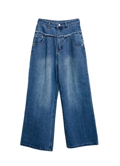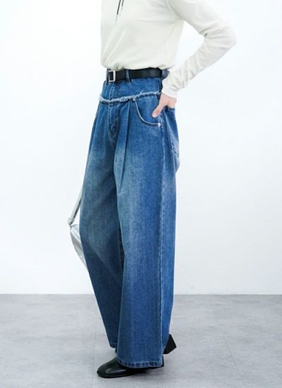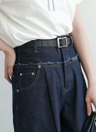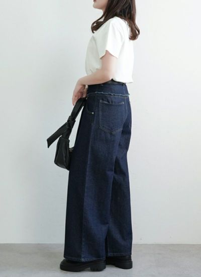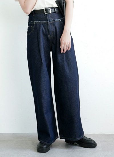 【新作おすすめ】 フリンジデニム切替タックパンツ