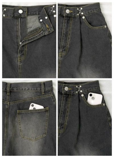 ジャストサイズにも腰履きにも出来るウエスト調整ホック付き。