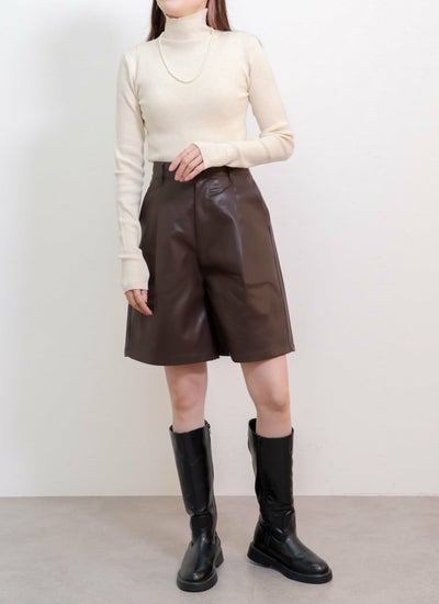 スタイリングを格上げする、大人カジュアルなフェイクレザーハーフパンツ。