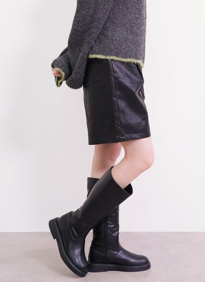 ロングブーツを合わせることで、足首まで隠しつつ、トレンド感のあるバランスの良いスタイリングが完成します。