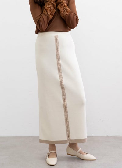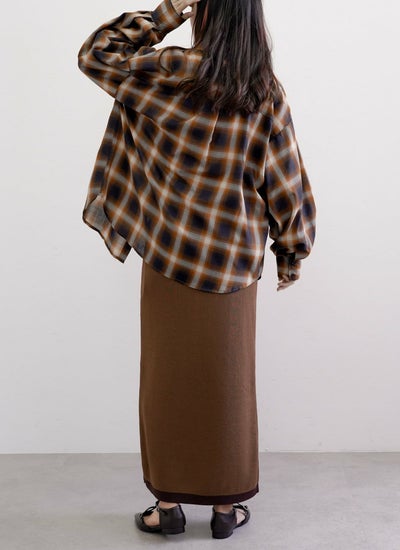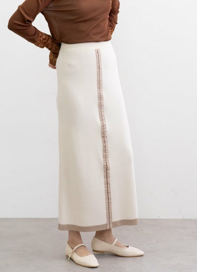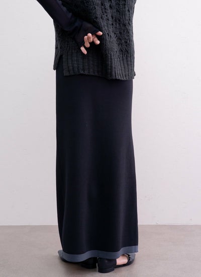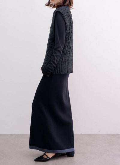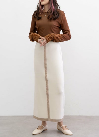 さらりとしたニット素材で仕立てた配色ホックスカート。