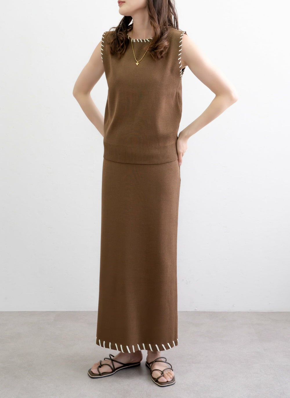 3. レーヨン配色ステッチベストスカートSET