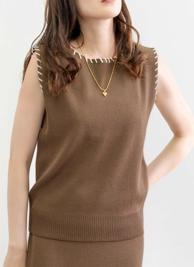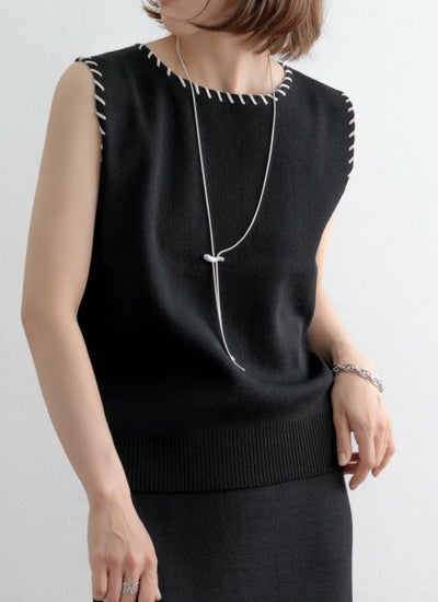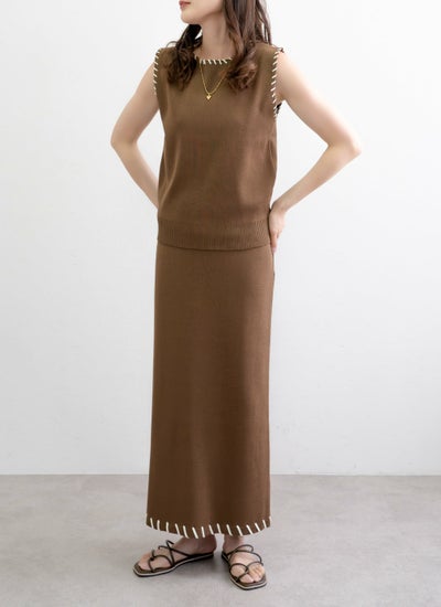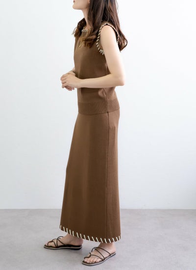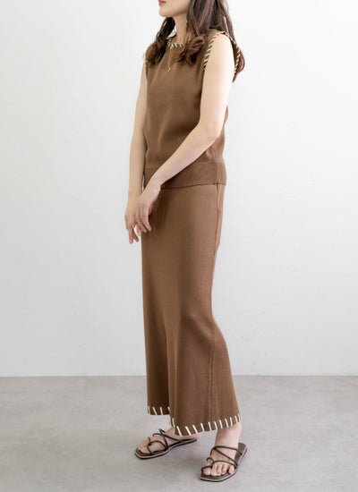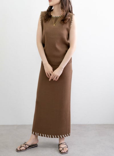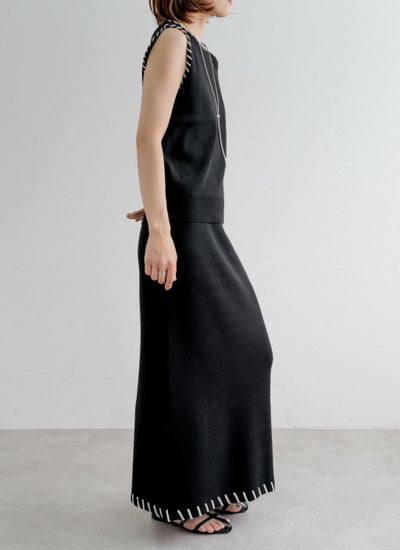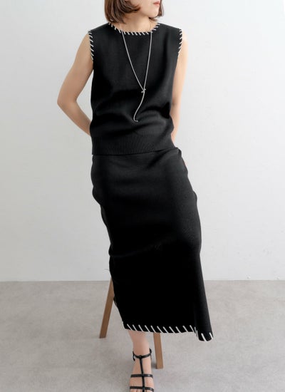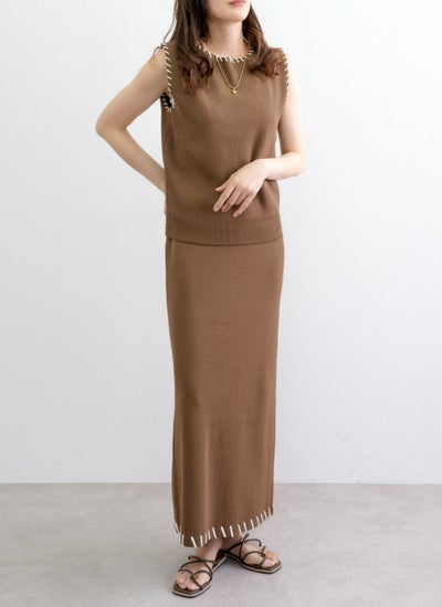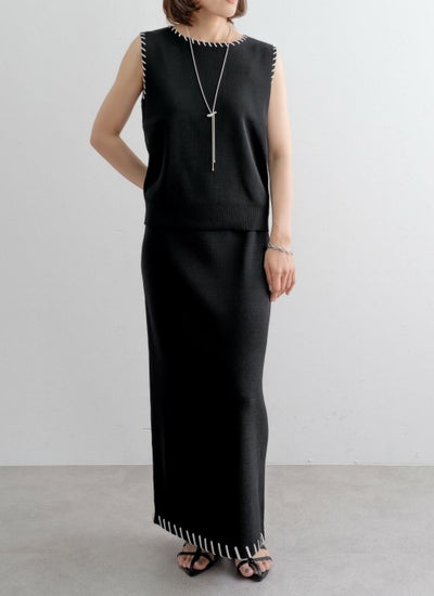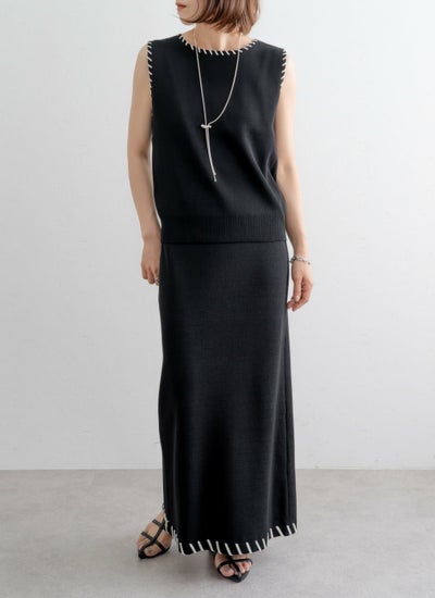 revoam【配色ステッチがポイントのセットアップアイテム】 レーヨン配色ステッチベストスカートSET