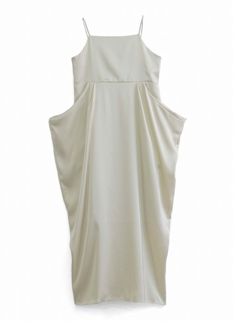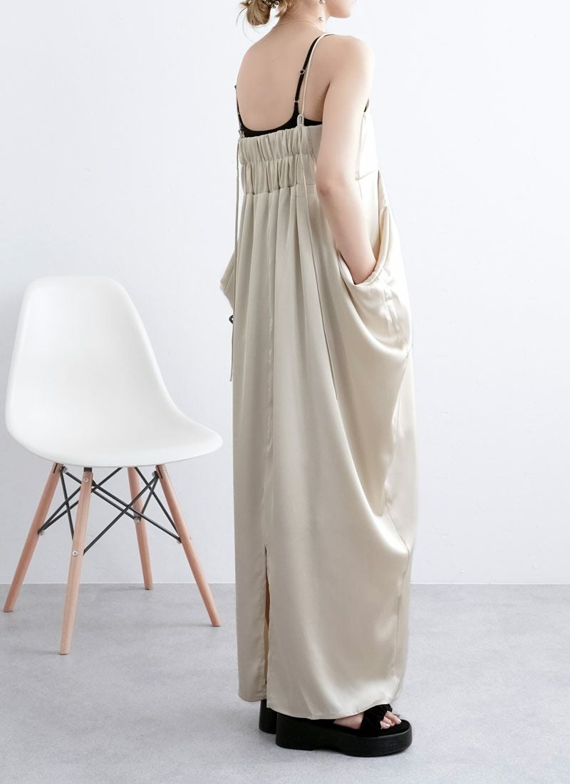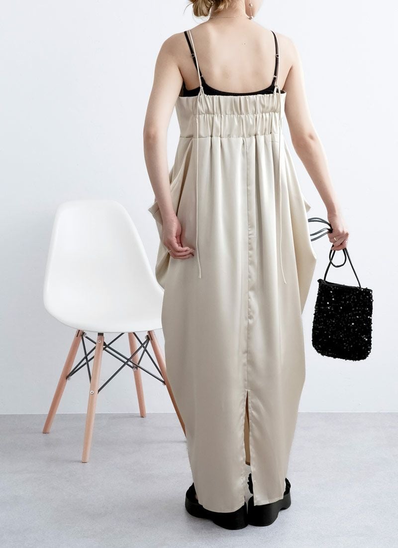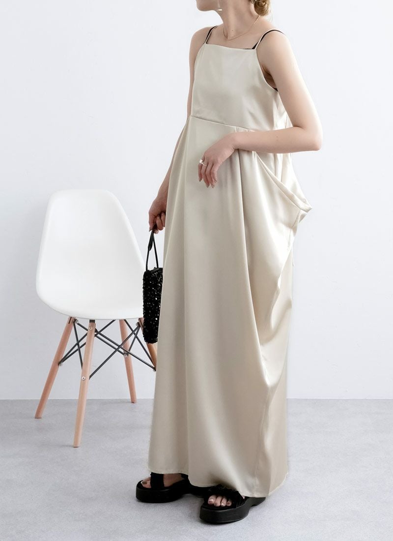 revoam【さりげない立体感が、大人の余裕。シンプルなのに印象に残る、サイドボリュームワンピ】 【20%OFF】マットサテンサイドボリュームキャミワンピース