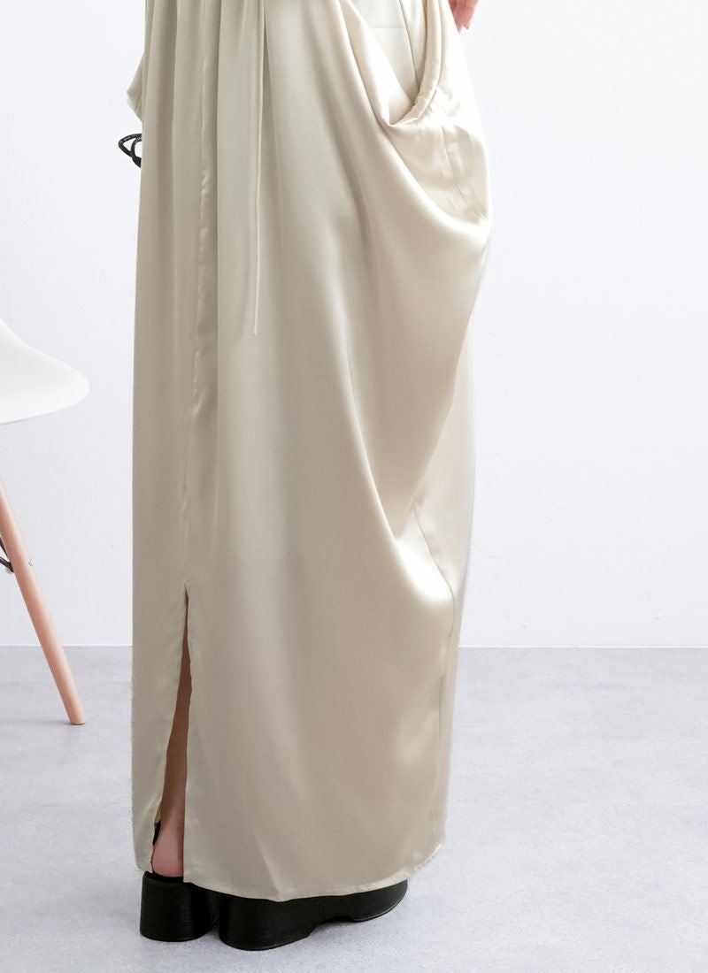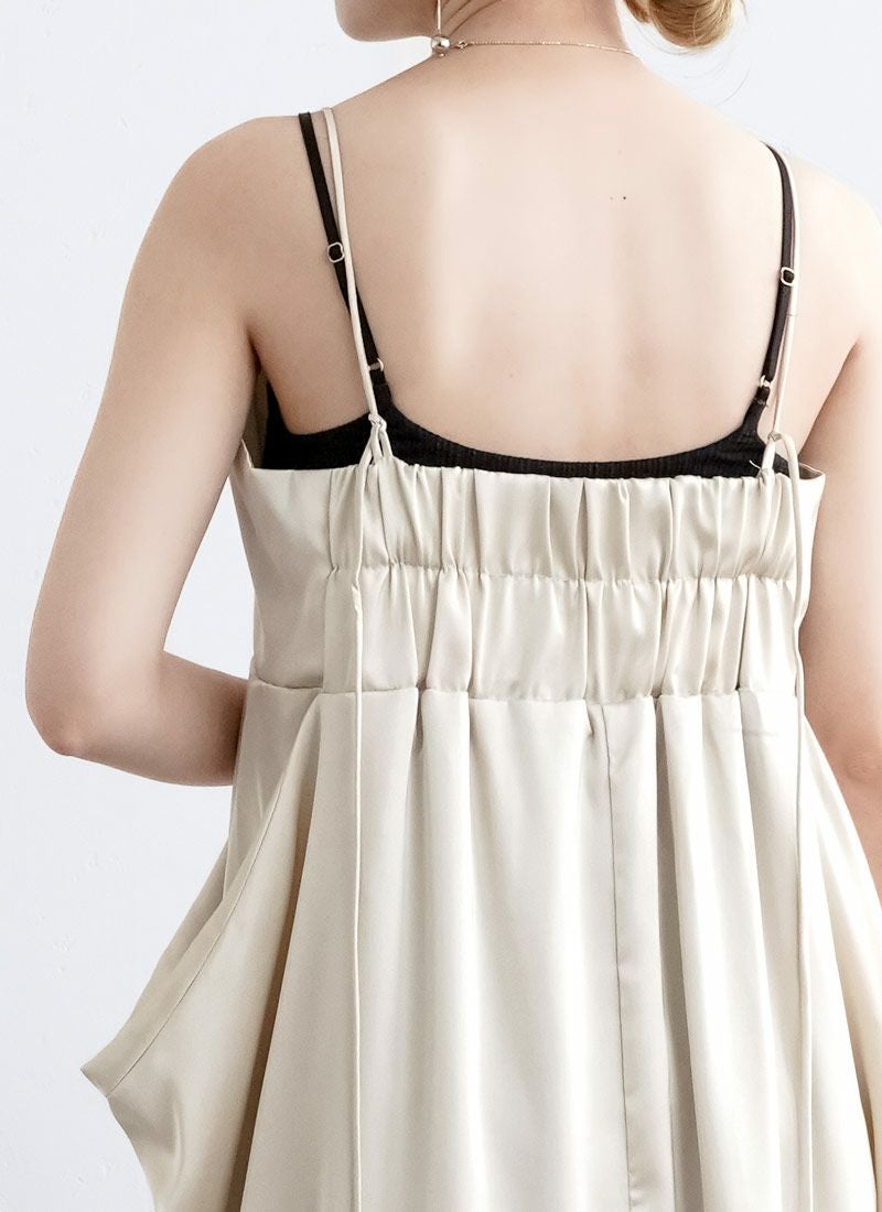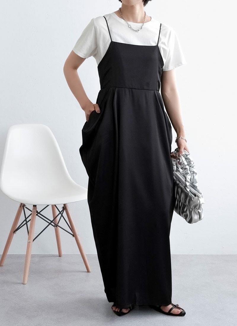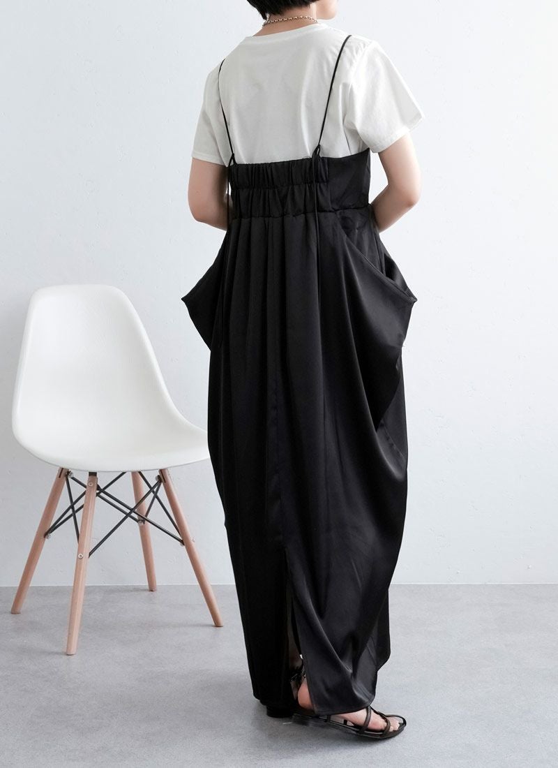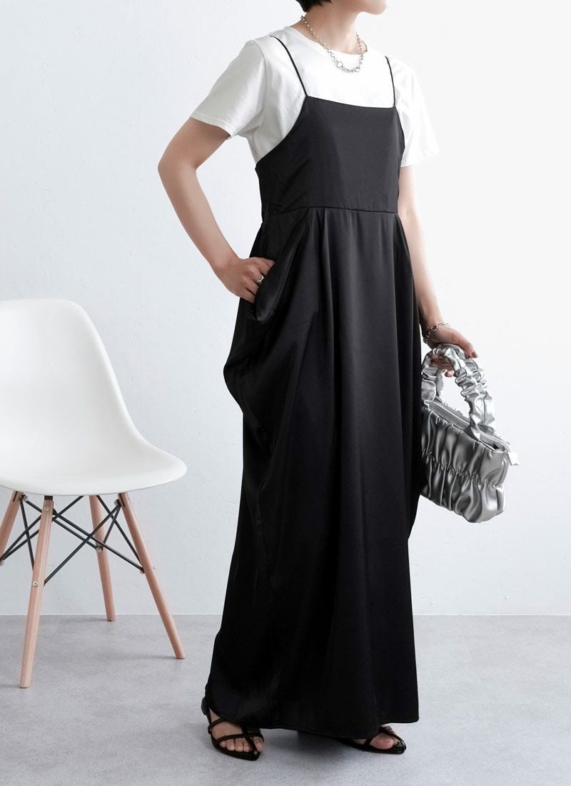 revoam【さりげない立体感が、大人の余裕。シンプルなのに印象に残る、サイドボリュームワンピ】 【20%OFF】マットサテンサイドボリュームキャミワンピース