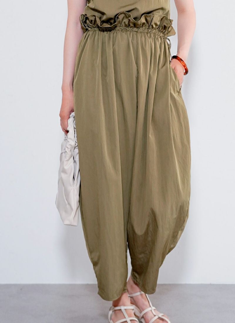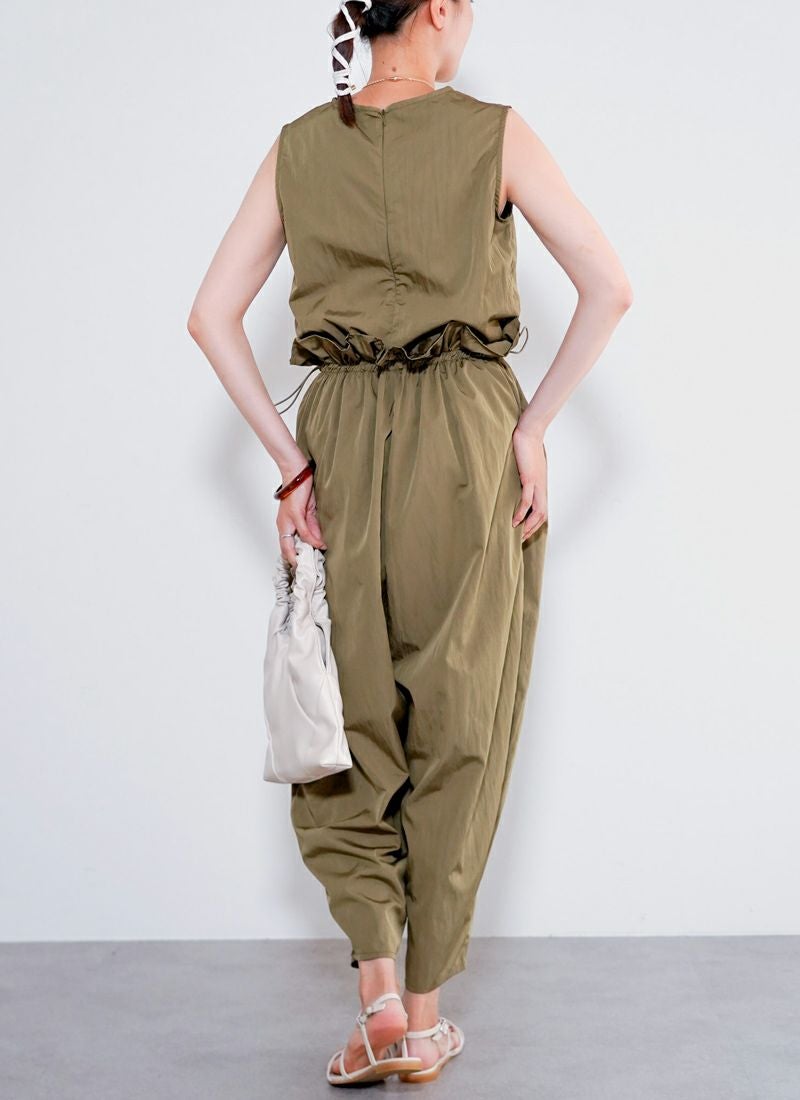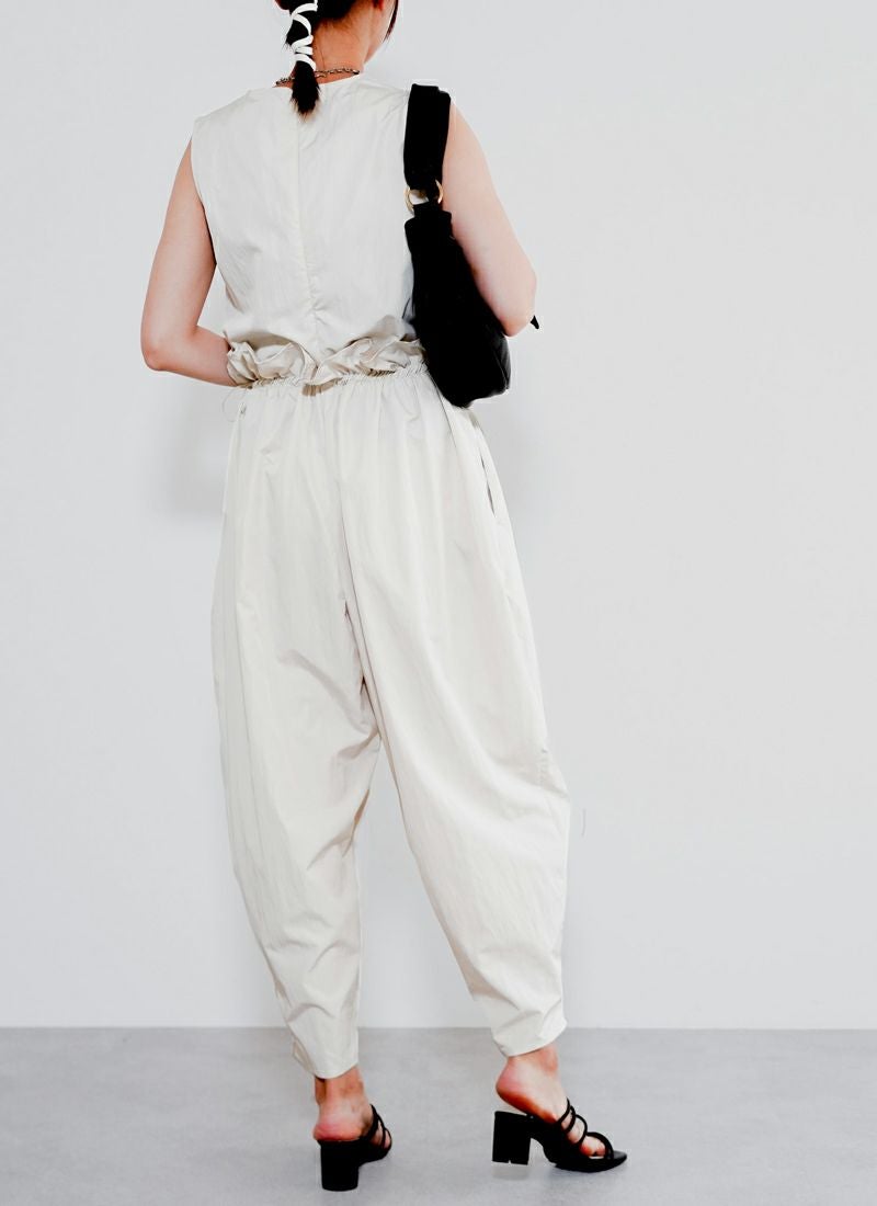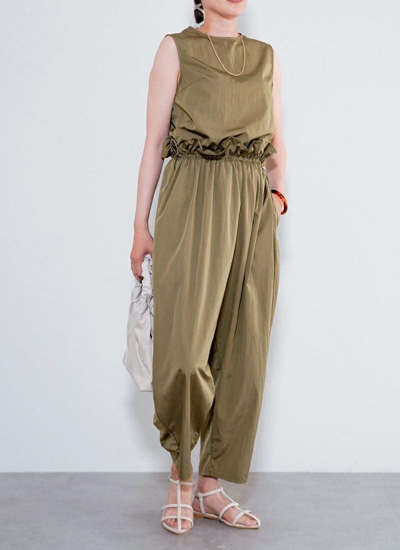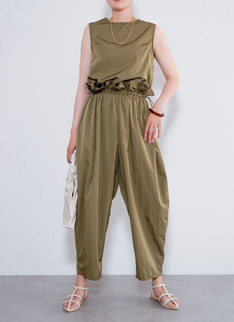revoam【たっぷりギャザーで、ゆるっと可愛い。楽ちんシルエットなのに、こなれ感たっぷりの旬オールインワン】 【30%OFF】タフタギャザーコクーン オールインワン