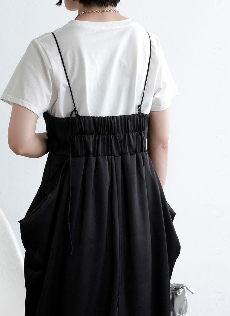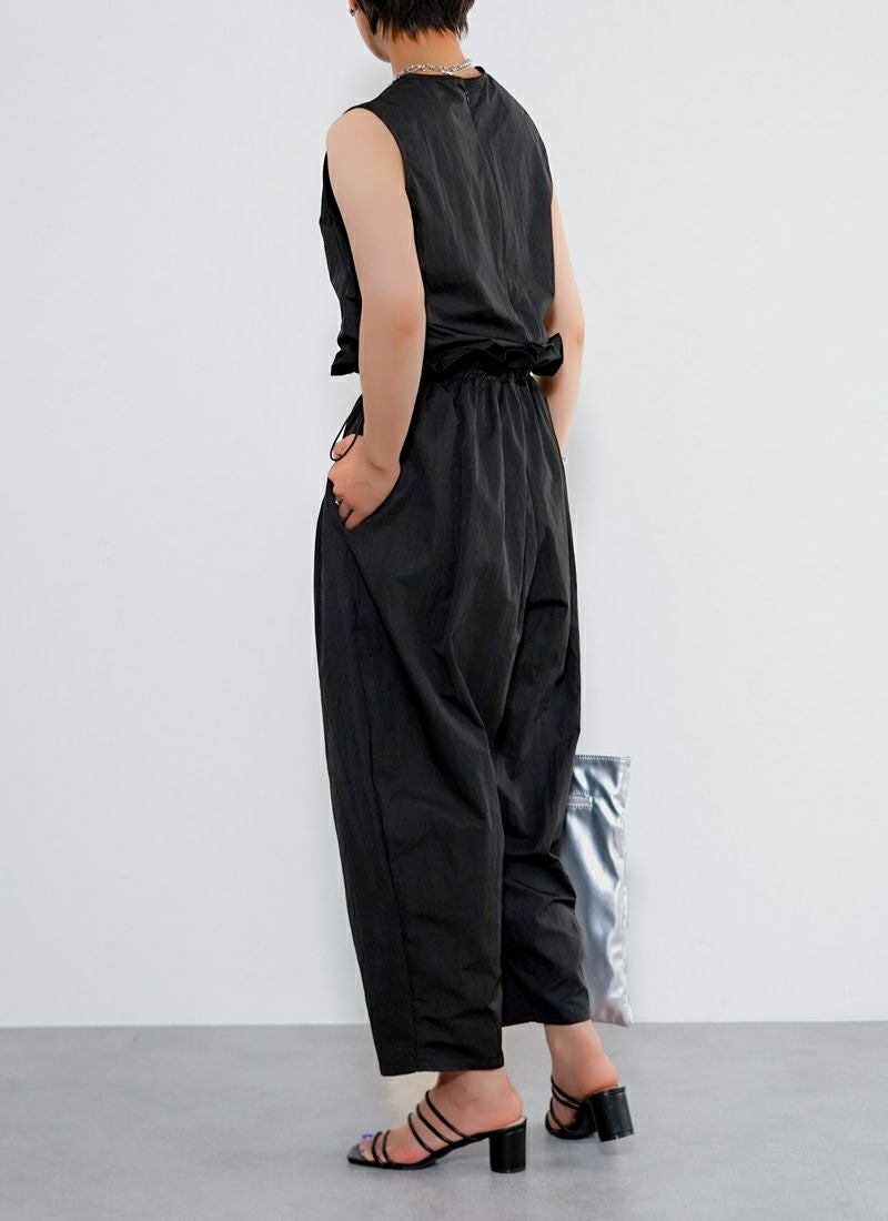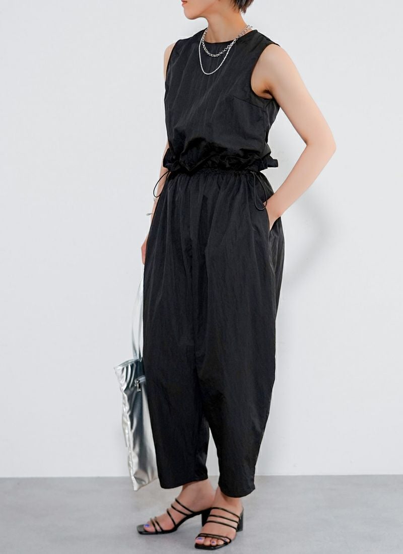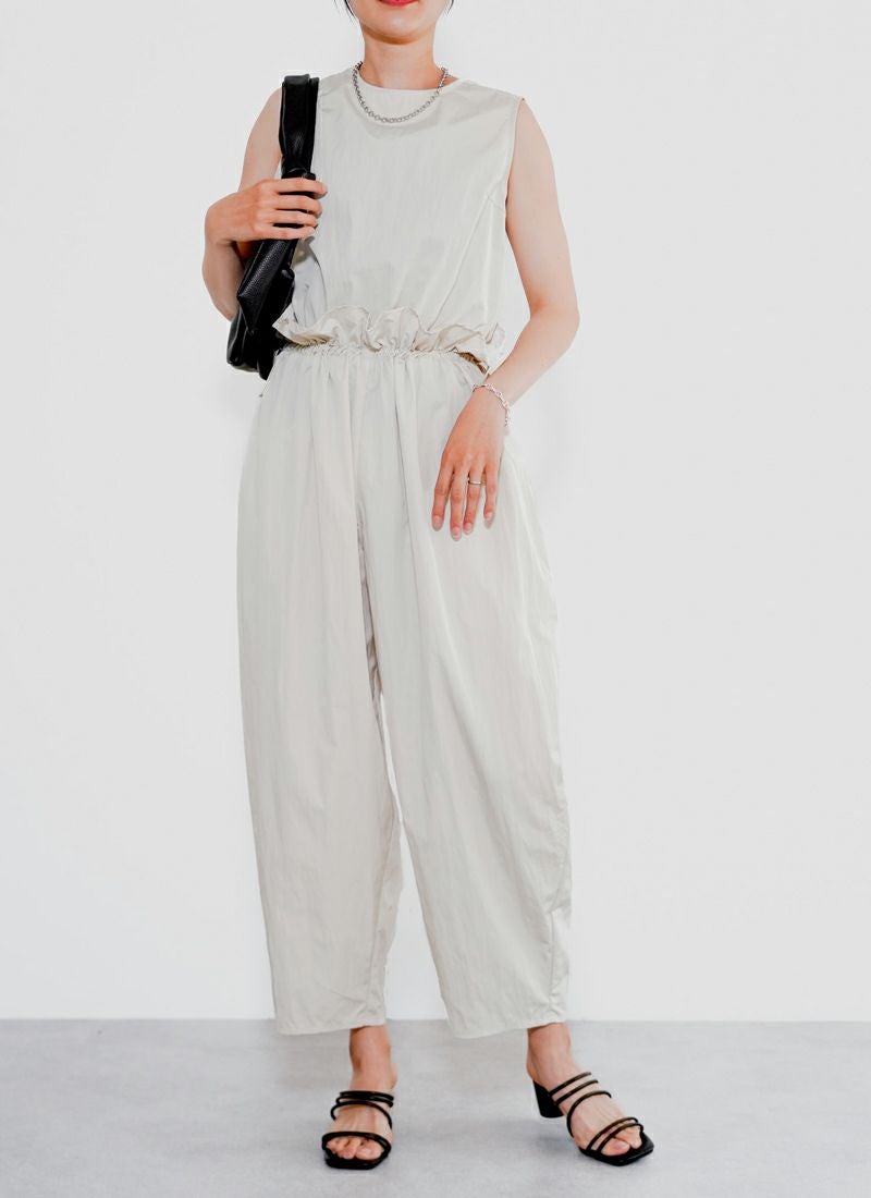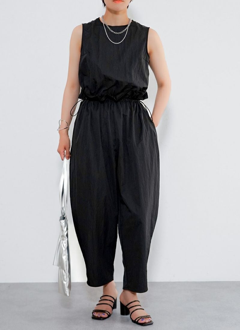 revoam【たっぷりギャザーで、ゆるっと可愛い。楽ちんシルエットなのに、こなれ感たっぷりの旬オールインワン】 【30%OFF】タフタギャザーコクーン オールインワン