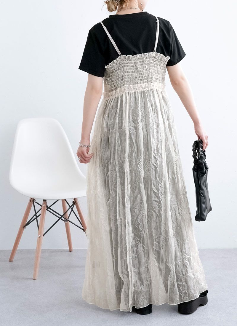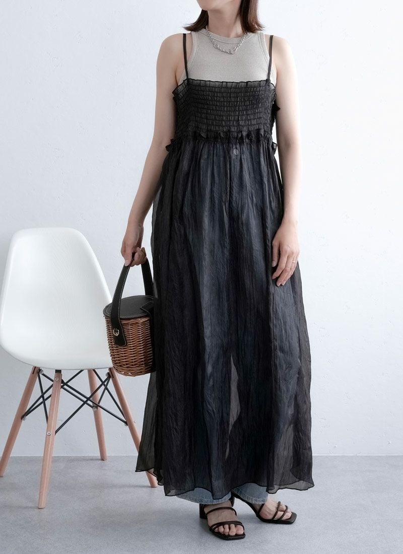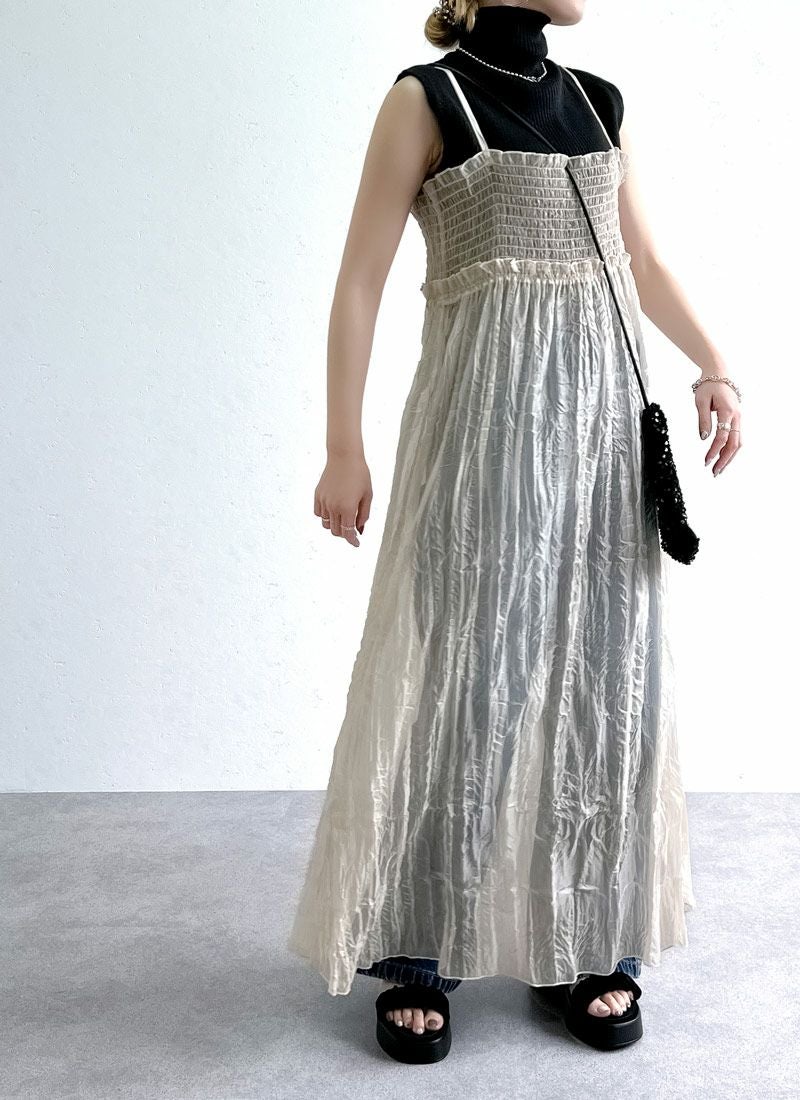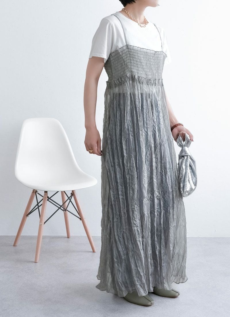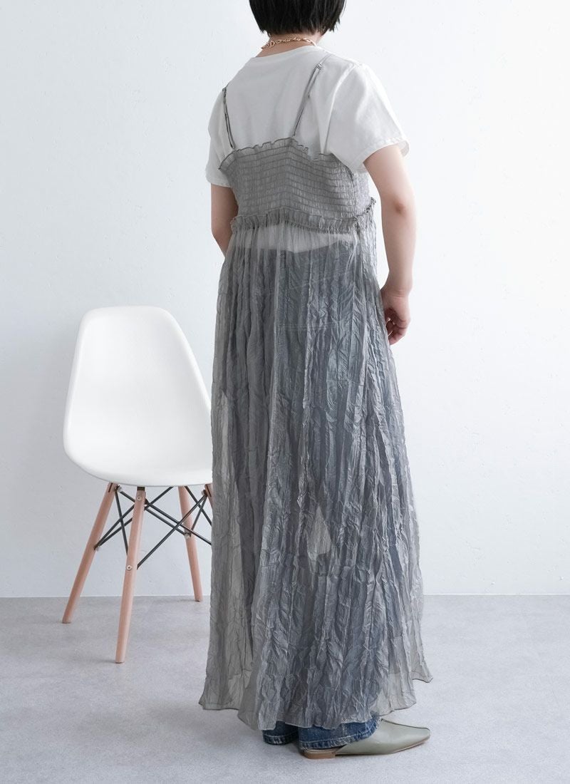revoam【ふわっと軽やかなのに洒落感たっぷり。クラッシュ素材が映えるレイヤードも楽しめる1枚】 【20%OFF】クラッシュオーガンジーキャミワンピース