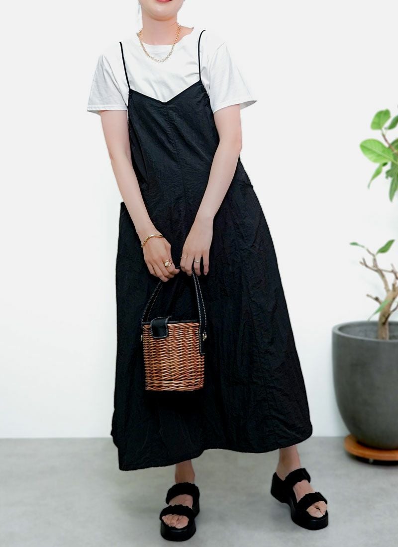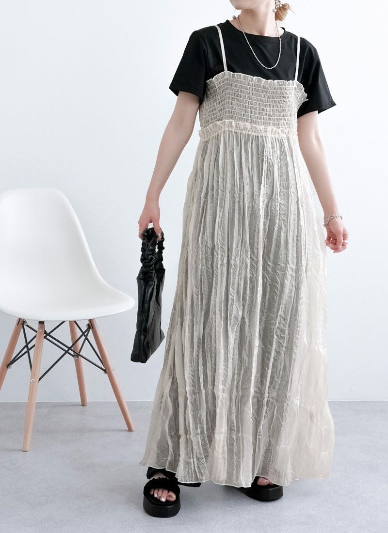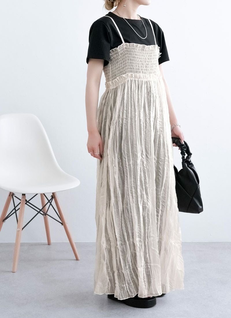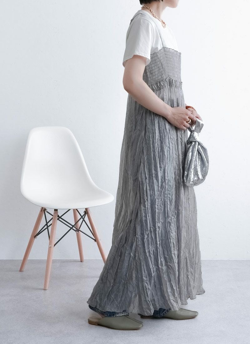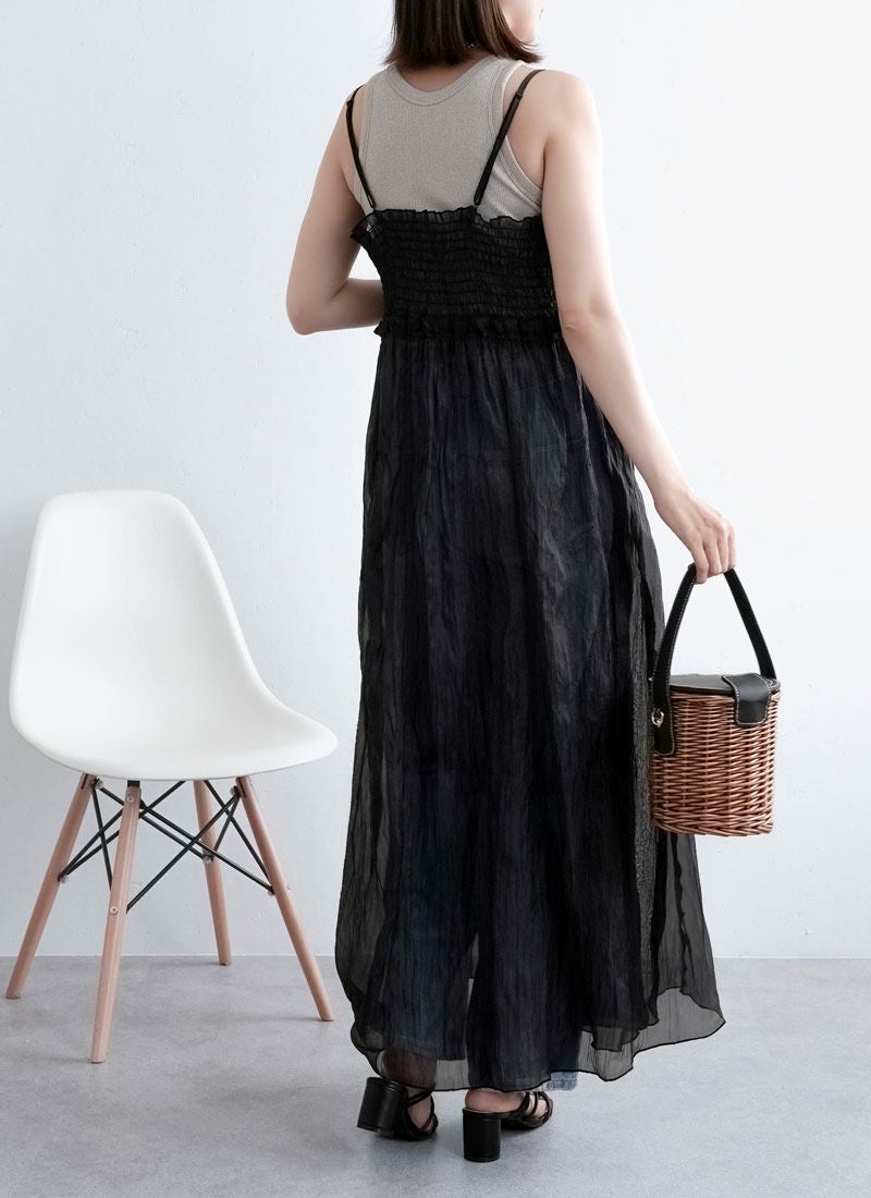 revoam【ふわっと軽やかなのに洒落感たっぷり。クラッシュ素材が映えるレイヤードも楽しめる1枚】 【20%OFF】クラッシュオーガンジーキャミワンピース