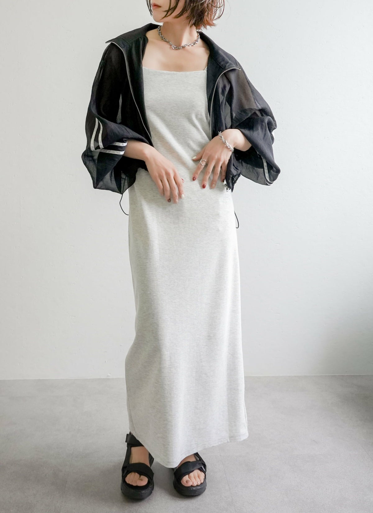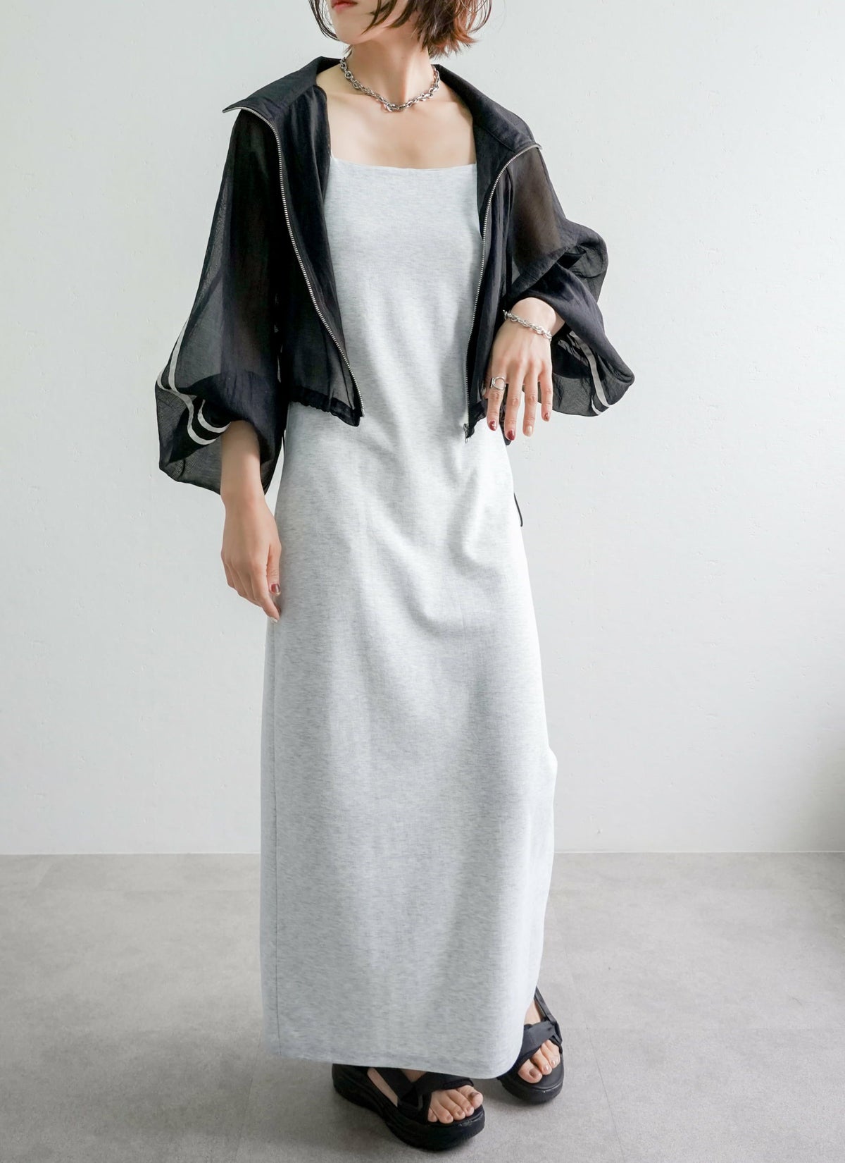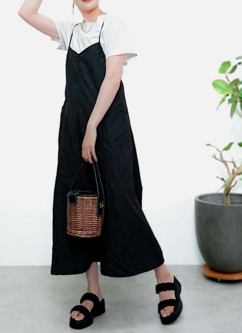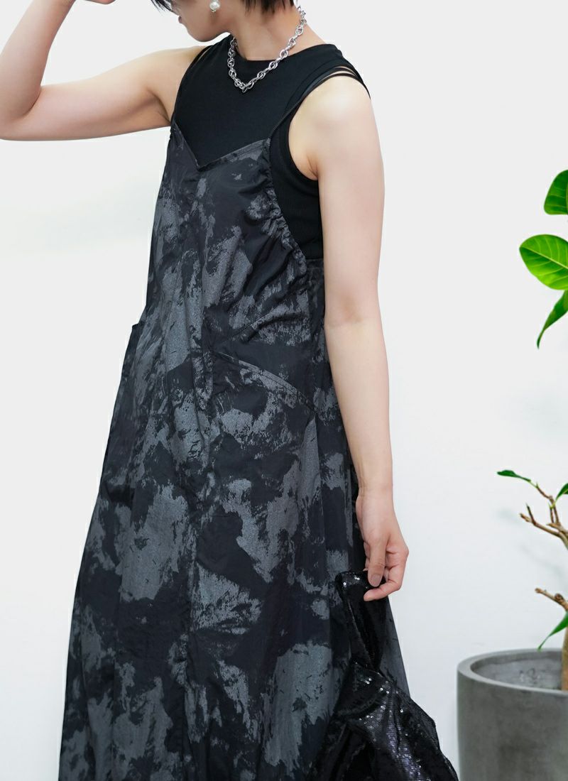 revoam【ふわっと軽やかなのに洒落感たっぷり。クラッシュ素材が映えるレイヤードも楽しめる1枚】 【20%OFF】クラッシュオーガンジーキャミワンピース